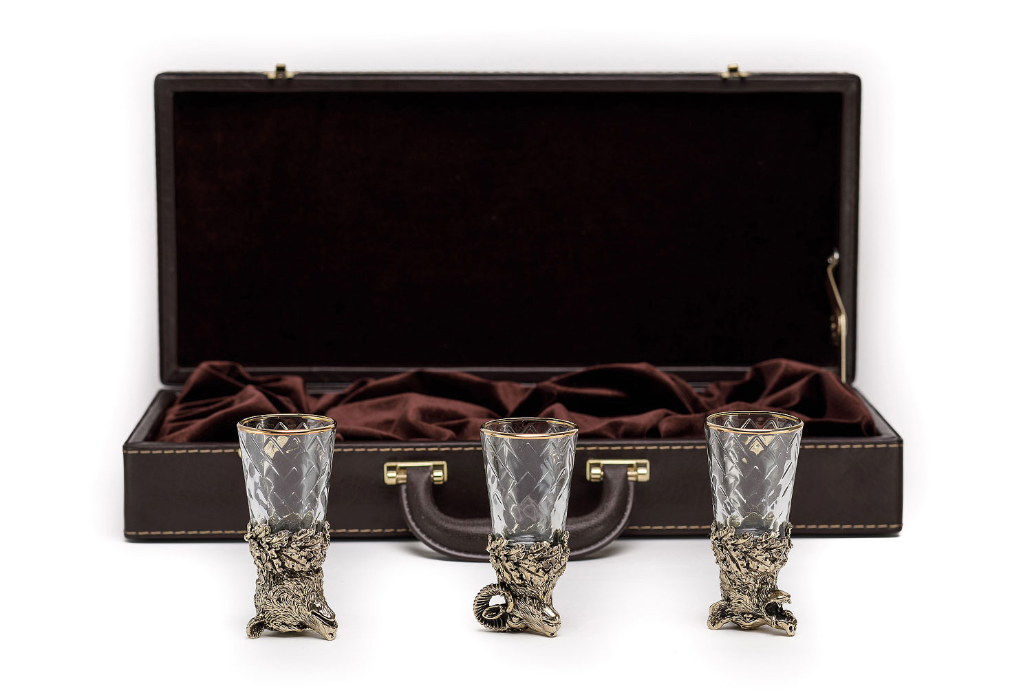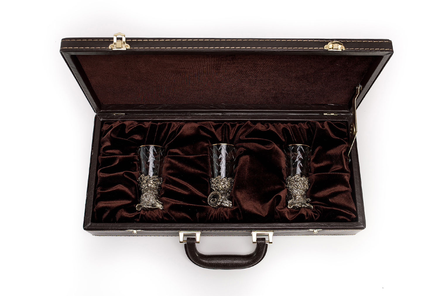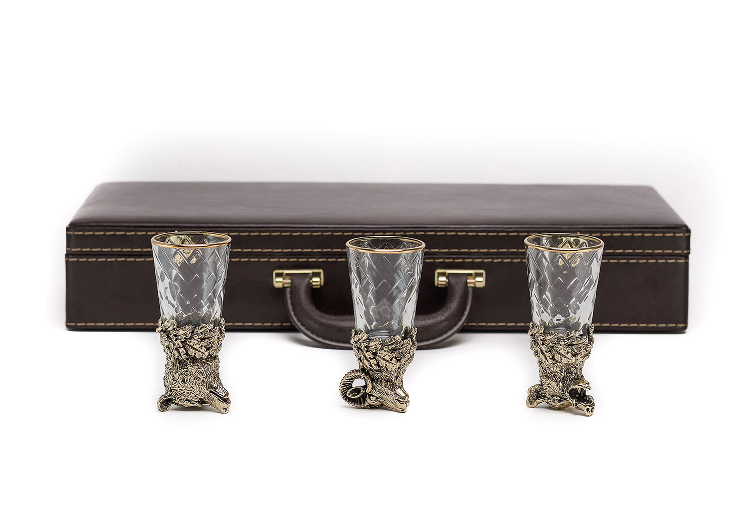 Чарки 3 шт (уп. кожа) медведь, заяц, кабан