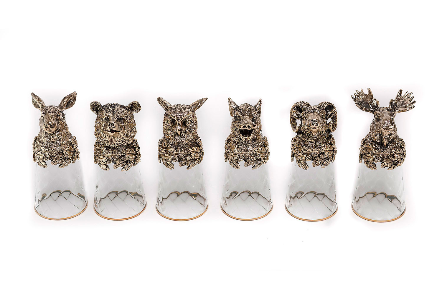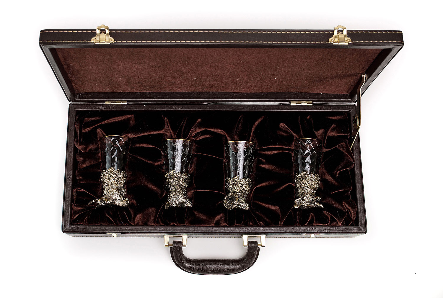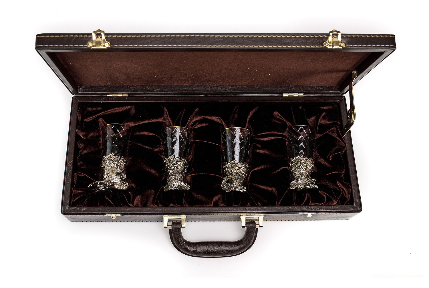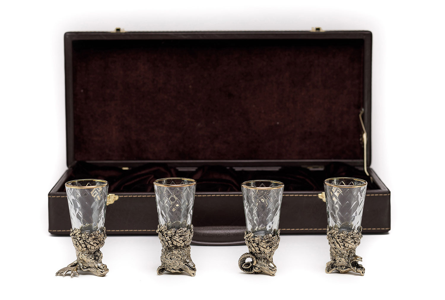 Чарки 4 шт медведь, сова, баран, лось (уп. кожа)