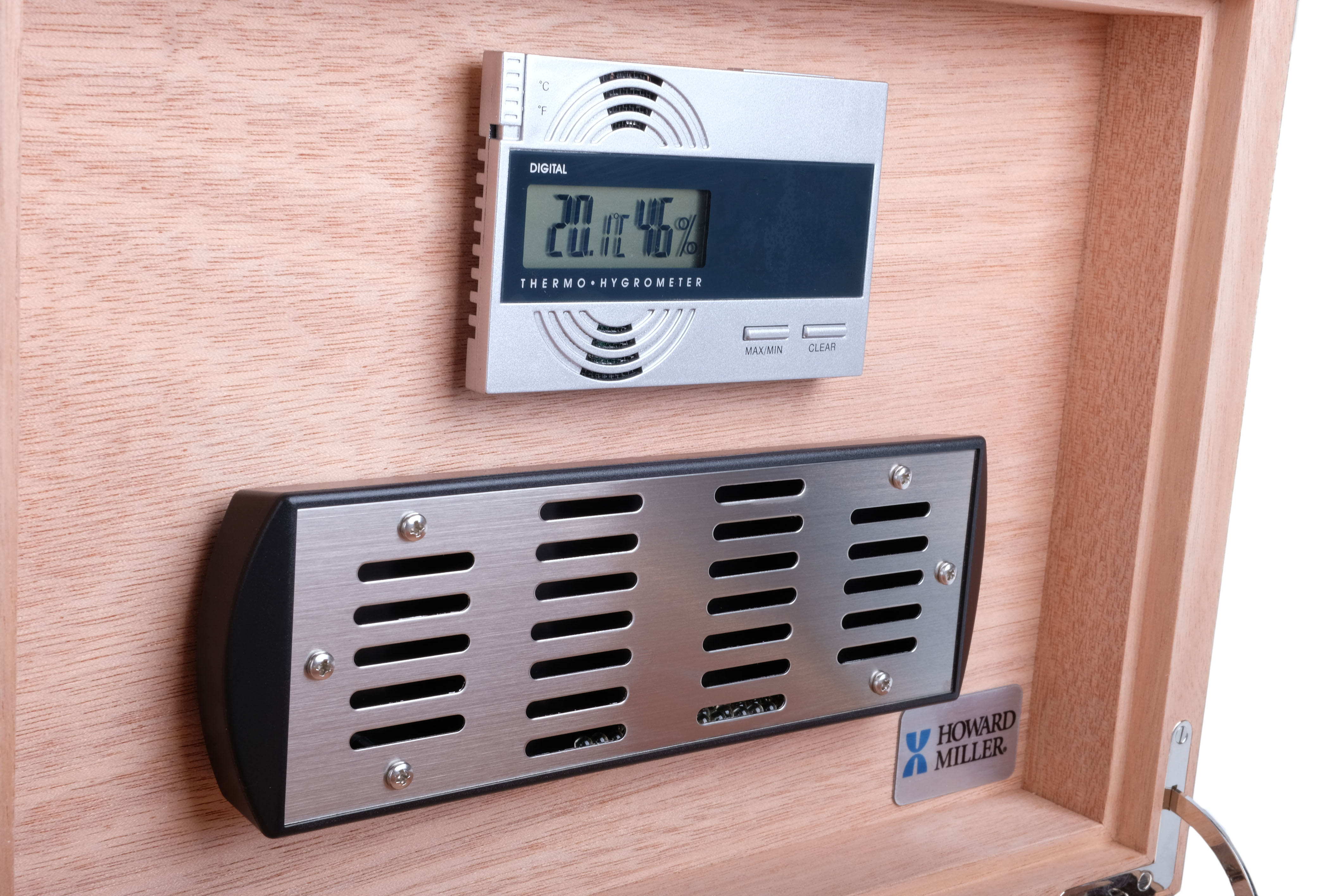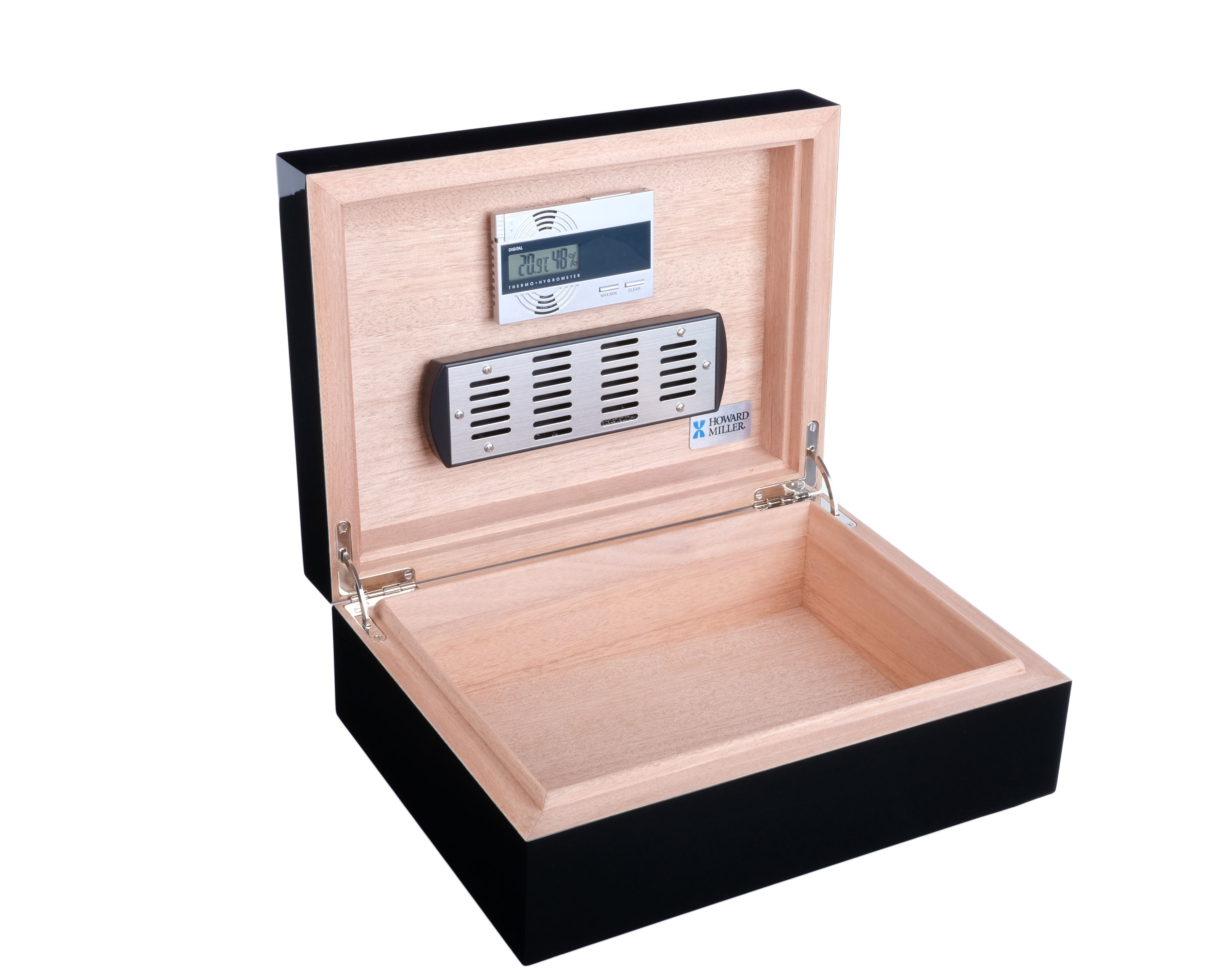 Хьюмидор howard miller на 40 сигар, черный лак. Хьюмидор премиум-класса на 40 сигар от американской компании Howard Miller — известного производителя предметов интерьера. Изделие со строгим классическим дизайном и качественным исполнением. Корпус хьюмидора представляет собой комбинацию нескольких видов дерева, что обеспечивает стойкость к деформации при колебаниях температуры и влажности, наружная отделка — глянцевый черный рояльный лак. Внутренняя отделка из испанского кедра. В комплекте с хьюмидором Howard Miller идут увлажнитель с акриловым полимером последнего поколения, высокоточный электронный термогигрометр, подробная инструкция по эксплуатации. Тканевый чехол и подарочная коробка. Производитель оставляет за собой право без предварительного уведомления вносить незначительные изменения в конструкцию или комплектацию изделия с целью улучшения его свойств. Материал Рояльный лак, кедр Производитель Howard Miller, США Размер 29х22х11, 25х18х8, вес 2 кг