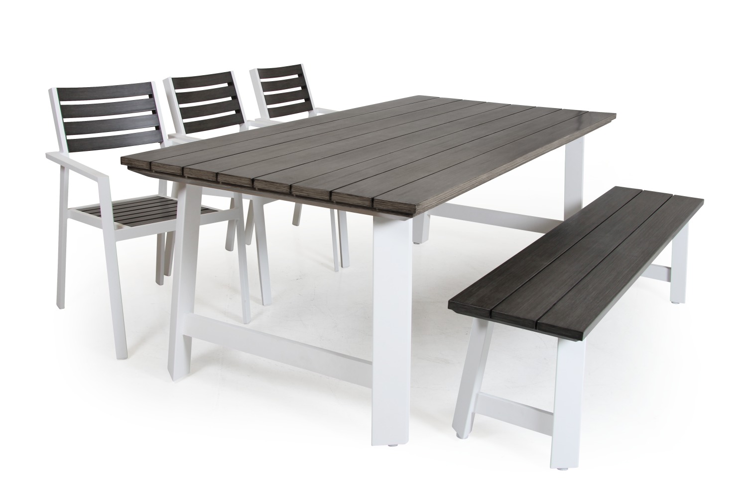 Современная серия из алюминия с древесным оттенком. Легкая в уходе мебель.