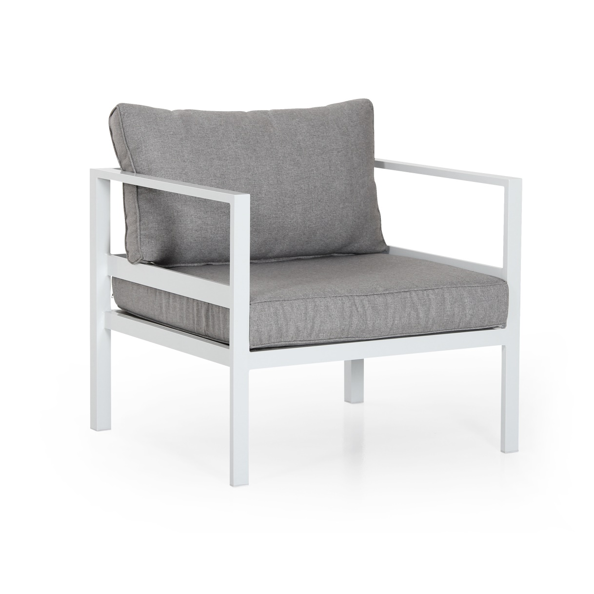 Кресло brafab leone white, садовая мебель. Наша самая большая алюминиевая серия Leone имеет все, что вам нужно! Постройте зону отдыха или же создайте обеденную группу. Серия выполнена из алюминия с покрытием белого и черного цвета. Подушки выполнены в сером цвете из олефиновой ткани и идут в комплекте с изделиями. Размер, см 78 X 84 X 65 Материал каркаса Всепогодный алюминий Страна бренда Швеция Цвет Серый / Белый Артикул производителя 4201-50-76