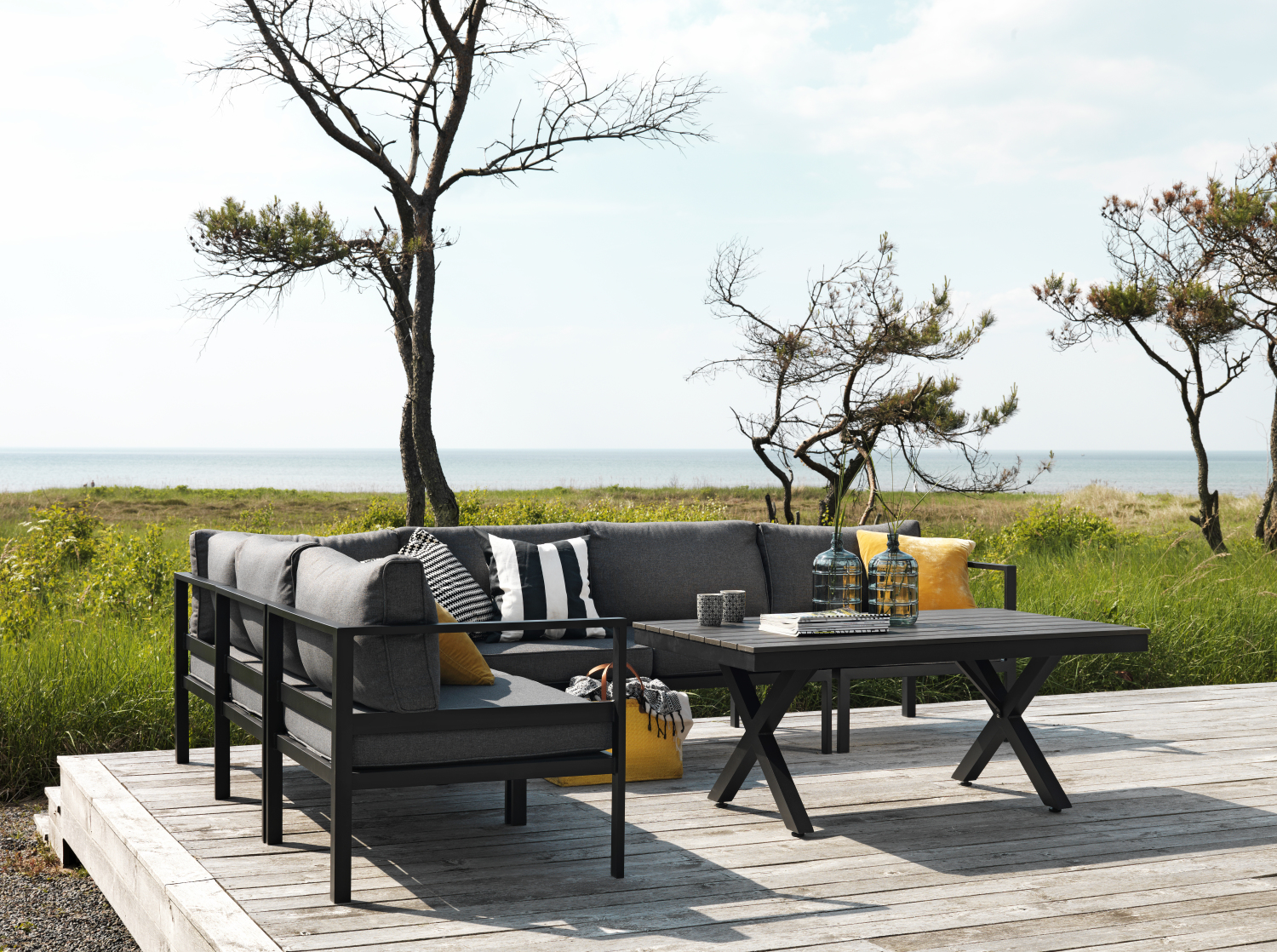 Угловой модуль brafab leone black, садовая мебель. Наша самая большая алюминиевая серия Leone имеет все, что вам нужно! Постройте зону отдыха или же создайте обеденную группу. Серия выполнена из алюминия с покрытием белого и черного цвета. Подушки выполнены в сером цвете из олефиновой ткани и идут в комплекте с изделиями. Размер, см 83 Х 83 Х 65 Материал каркаса Всепогодный алюминий Страна бренда Швеция Цвет Серый / Черный Артикул производителя 4205-80-72