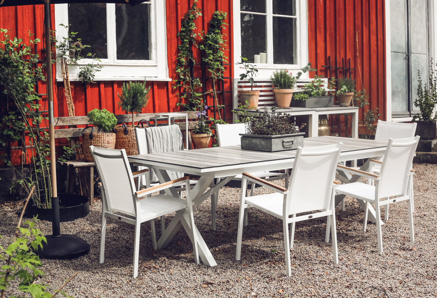 Стол раздвижной brafab hillmond 220 wg, садовая мебель. Настало время для грандиозной, эпической вечеринки! На высоте 310 см, Hillmond - наш самый большой удлинительный стол, за котором могут разместиться как минимум 12 человек. Застолье выполнено из лакированного алюминия, а верх может представлять собой либо поперечные алюминиевые ребра с тисненым деревянным рисунком, либо одну из наших ламинированных столешниц с деревянным рисунком. Hillmond также доступен в уменьшенном варианте 160-220 см, вмещает 8-10 человек. Обеденный стол, см 220/160 X 100 X 76.5 Материал каркаса Всепогодный алюминий Материал столешницы Древесно-полимерный композит Страна бренда Швеция Цвет Белый / Серый