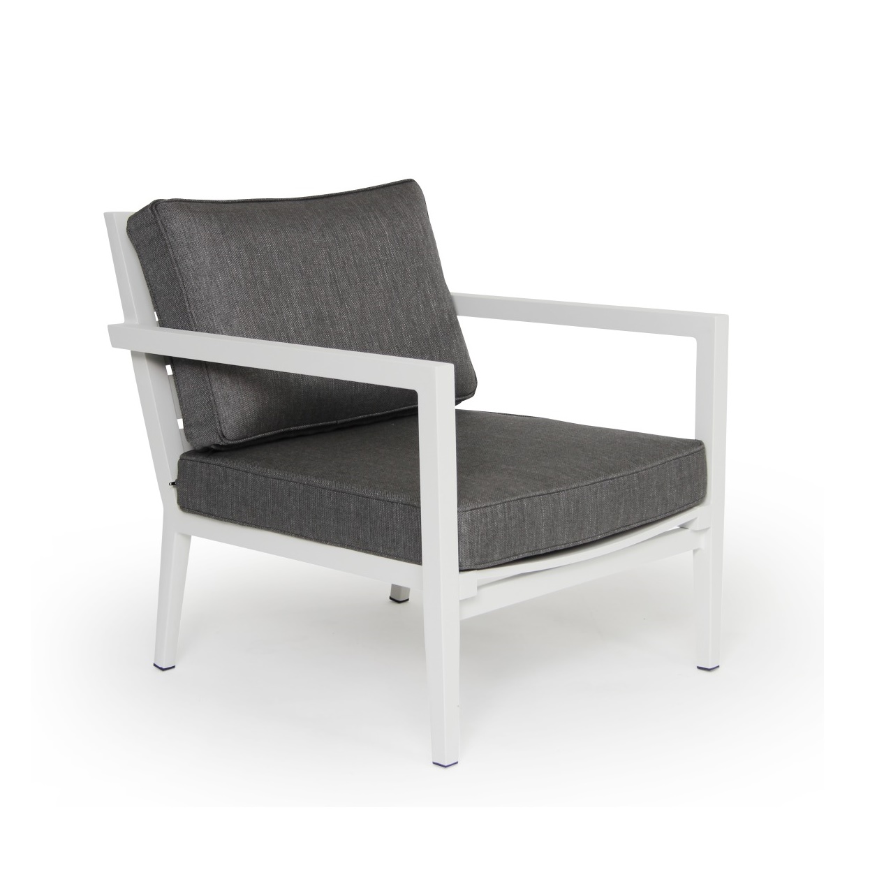 Кресло brafab biarritz, садовая мебель. Серия мебели Biarritz нашла себя в идеальной комбинации со столиками Chelles, образуя прекрасную группу как на террасе, так в домашних помещениях. Стильный, практичный ассортимент журнальных столиков из матового белого и черного алюминия. Подушки из светло-серой олефиновой ткани. Размер, см 72 X 83 X 87 Материал каркаса Всепогодный алюминий Страна бренда Швеция Цвет Белый / Серый Артикул производителя 4651-5-74