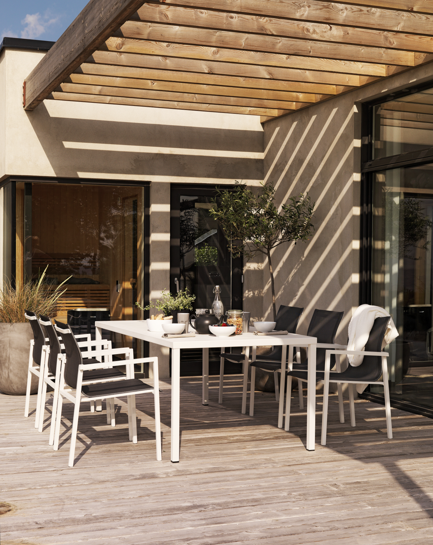 Кресло обеденное brafab belfort white, садовая мебель. Belfort - современная серия мебели с превосходным комфортом для сидения, доступная в матовой белой или черной алюминиевой раме с серой текстильной тканью и высококачественными подушками из ткани Olefin. Серия состоит из 13 отдельных частей: трехместный диван, кресло и журнальный столик, три части здания, а также обеденный стол и удобный складной обеденный стул. Размер, см 57 X 61 X 86 Материал каркаса Всепогодный алюминий Страна бренда Швеция Цвет Белый / Серый Артикул производителя 4799-5-7