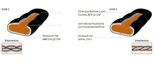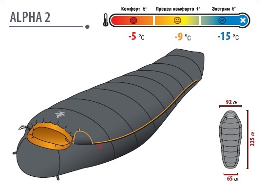Комбинированный спальный мешок для низких температур Alpha 1+2