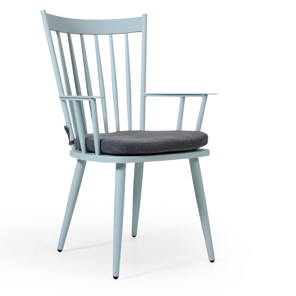 Стул brafab alvena blue, садовая мебель. Виндзорское кресло - настоящая классика. Наше кресло Alvena и диван Windsor из лакированного алюминия выдержат любые погодные условия. При создании данной коллекции дизайнеры вдохновлялись 1940-ми годами и несмотря на это мебель идеально впишется и в современную обстановку. Доступен в белом, черном, голубом и светло-зеленом цветах. Размер, см 55,5 X 45,5 X 94,5 Материал каркаса Всепогодный алюминий Страна бренда Швеция Цвет Голубой / Серый Артикул производителя 3401-10-71