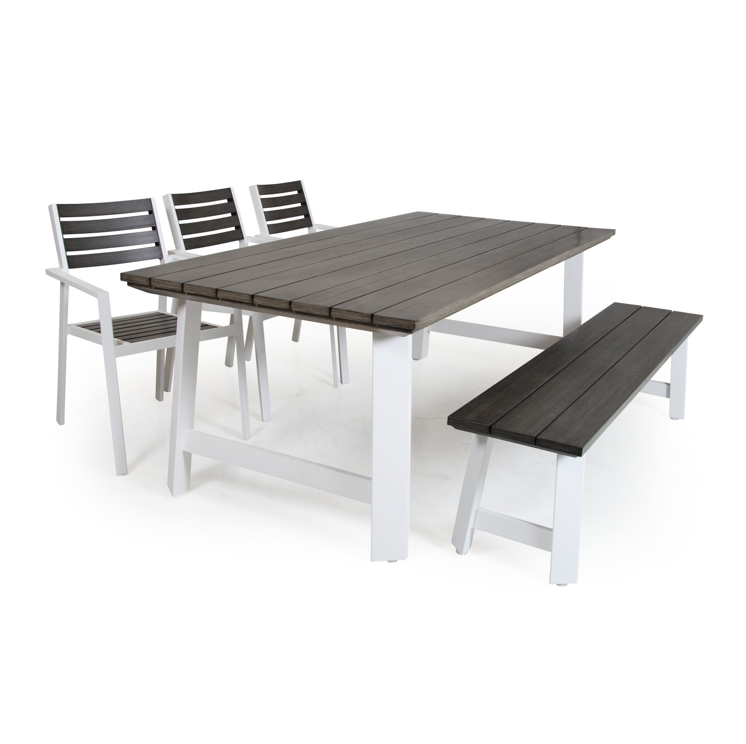 Обеденная группа brafab wayburn, садовая мебель. Современная серия из алюминия с древесным оттенком. Легкая в уходе мебель. Стул nbsp - 3 шт. (3921-7) Стол nbsp - 1 шт. (3926-7) Скамья - 1 шт. (3923-7) (175х47 см, h=45 см) Так же по Вашему желанию все элементы можно приобрести по отдельности, или дополнить зону любыми элементами данного комплекта. nbsp Стул, см 54 X 56 X 88 Обеденный стол, см 210 X 99 X 74 Материал каркаса Всепогодный алюминий Материал изделия Текстилен Страна бренда Швеция