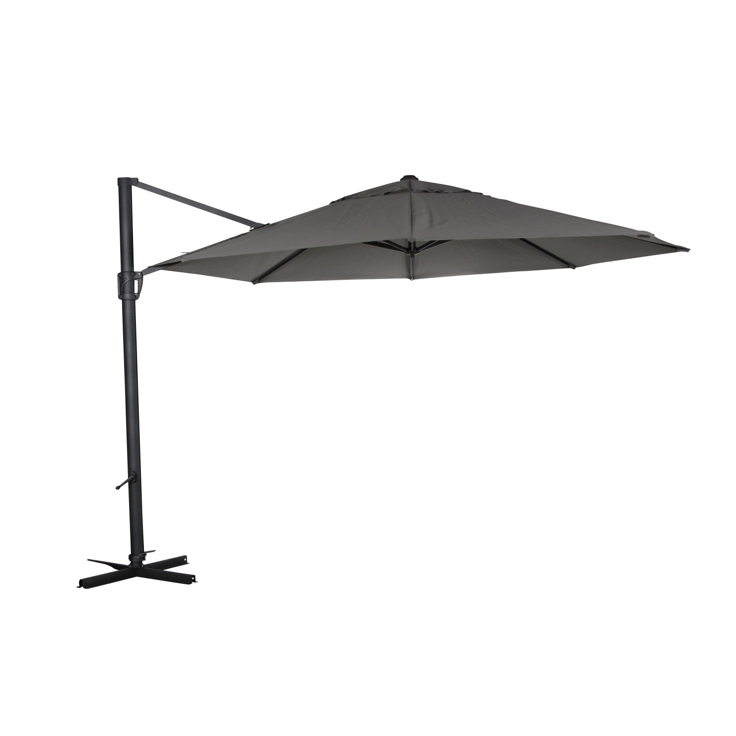 Зонт уличный brafab fiesole grey, садовая мебель. Большой 3,5 м подвесной зонт. Окрашенная ткань Obravia высочайшего качества и подставка из антрацитового алюминия с рукояткой и плавной регулировкой. Поставляется с поперечным основанием, которое должно быть закреплено с использованием базовых весов зонтика или эквивалентного. Размеры купола, см 350 Материал стойки Сталь Высота, см 270 Артикул производителя 8853-7-7