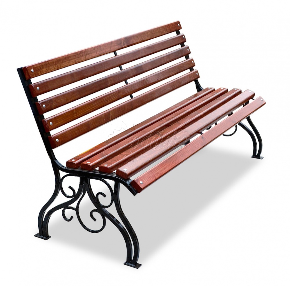 Скамейка кованая «вена» 1,2 м. Подробные характеристики Скамейка поставляется в разобранном виде! Материалы: Опоры: Cталь. Покрыты порошковой полимерной краской. Возможность выбора цвета по каталогу RAL. Стандартный цвет (по умолчанию) - черный. Сиденье и спинка: Брус из хвойных пород древесины - ангарская сосна (варианты исполнения: лиственница, композитные материалы) различного сечения. Огнебиозащитные пропитки + тонировочный состав с антисептиком + два слоя яхтного лака с промежуточным шлифованием. Возможность выбора цвета из палитры. Фурнитура: Оцинкованная. Возможность выбора цвета фурнитуры по каталогу RAL. Стандартный цвет (по умолчанию) - серебристый. Возможность использования потайной/скрытой фурнитуры. Технические характеристики: Высота: 830 мм Ширина: 570 мм Длина: 600 - 3000 мм Высота сиденья: 450 мм Ширина сиденья: 400 мм Длина посадочного места: 600 - 3000 мм Вес версии 0.6 м: 14,3 кг Вес версии 1.2 м: 20 кг Вес версии 1.5 м: 22,3 кг Вес версии 1.8 м: 24,7 кг Вес версии 2.0 м (2 опоры): 26,3 кг Вес версии 2.0 м (3 опоры): 29,3 кг Вес версии 2.5 м (3 опоры): 34,3 кг Вес версии 3.0 м (3 опоры): 38,3 кг О модели Скамейка «Вена» притягивает взгляды своими декоративными коваными элементами изящных опор. Такая скамейка не займет много места и станет прекрасным дополнением экстерьера или интерьера различных архитектурных стилей. Несмотря на свой небольшой размер, она будет одинаково удобна как для детей, так и для пожилых людей. Варианты цвета на выбор: , махагон, палисандр, тик,