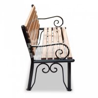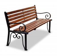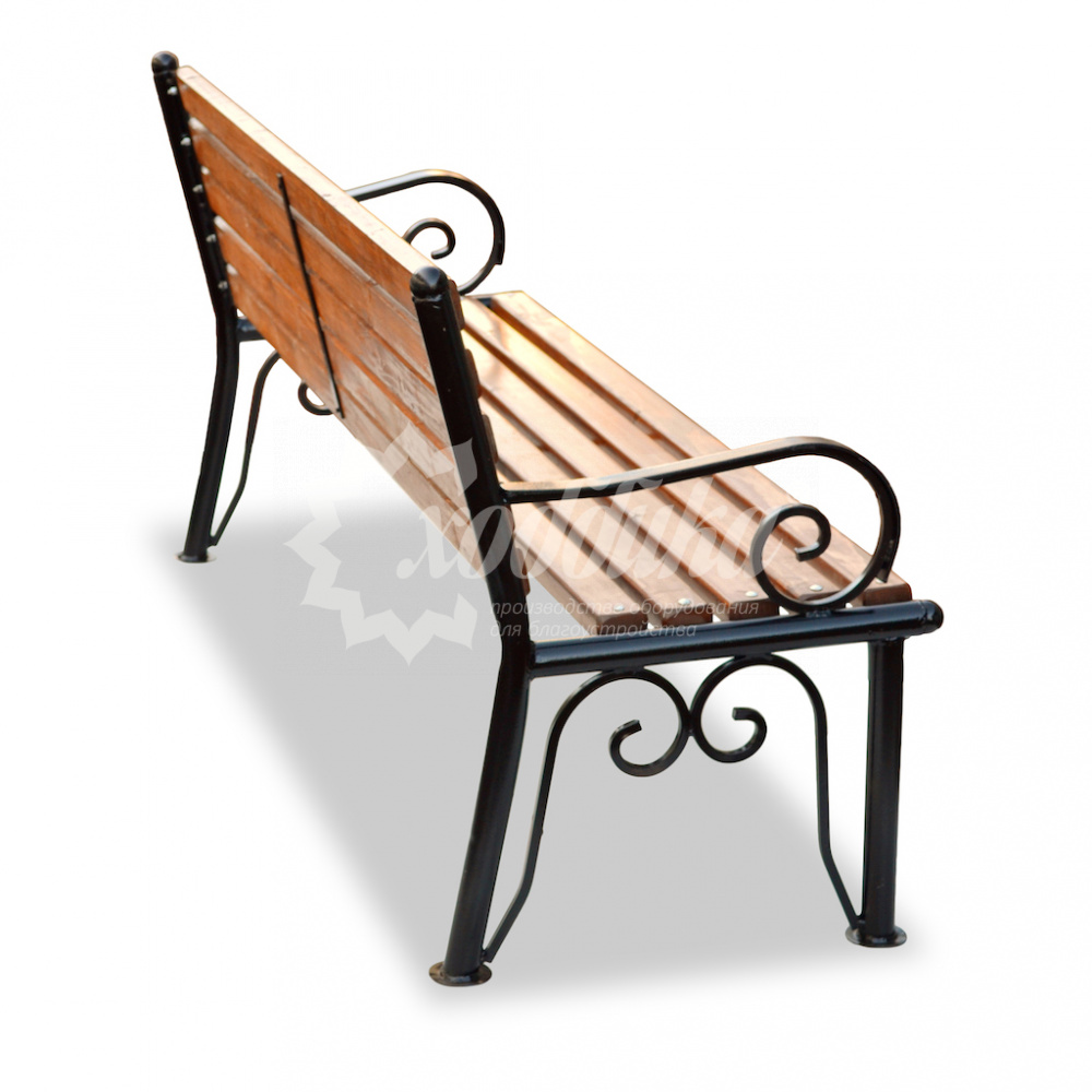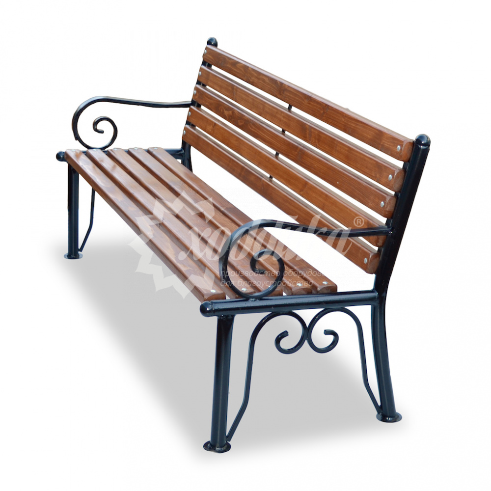 Скамейка кованая «узоры» кресло. Подробные характеристики Скамейка поставляется в разобранном виде! Материалы: Опоры: Cталь. Покрыты порошковой полимерной краской. Возможность выбора цвета по каталогу RAL. Стандартный цвет (по умолчанию) - черный. Сиденье и спинка: Брус из хвойных пород древесины - ангарская сосна (варианты исполнения: лиственница, композитные материалы) различного сечения. Огнебиозащитные пропитки + тонировочный состав с антисептиком + два слоя яхтного лака с промежуточным шлифованием. Возможность выбора цвета из палитры. Фурнитура: Оцинкованная. Возможность выбора цвета фурнитуры по каталогу RAL. Стандартный цвет (по умолчанию) - серебристый. Возможность использования потайной/скрытой фурнитуры. Технические характеристики: Высота: 800 мм Ширина: 610 мм Длина: 600 - 3000 мм Высота сиденья: 450 мм Ширина сиденья: 400 мм Длина посадочного места: 600 - 3000 мм Вес версии 0.6 м: 18,2 кг Вес версии 1.2 м: 23,7 кг Вес версии 1.5 м: 26,1 кг Вес версии 1.8 м: 28,5 кг Вес версии 2.0 м (2 опоры): 30 кг Вес версии 2.0 м (3 опоры): 34,6 кг Вес версии 2.5 м (3 опоры): 39,5 кг Вес версии 3.0 м (3 опоры): 43,5 кг О модели Скамейка «Узоры» - кованая скамейка с оригинальным классическим дизайном. За счет кованых элементов такая скамейка будет украшением садового участка или пешеходной зоны. Чтобы защитить скамейку от кражи мы предусмотрели возможность бетонирования или болтового крепления опор к основанию. Варианты цвета на выбор: , махагон, палисандр, тик,
