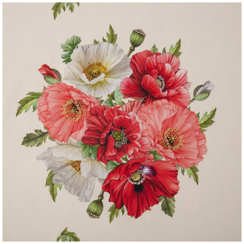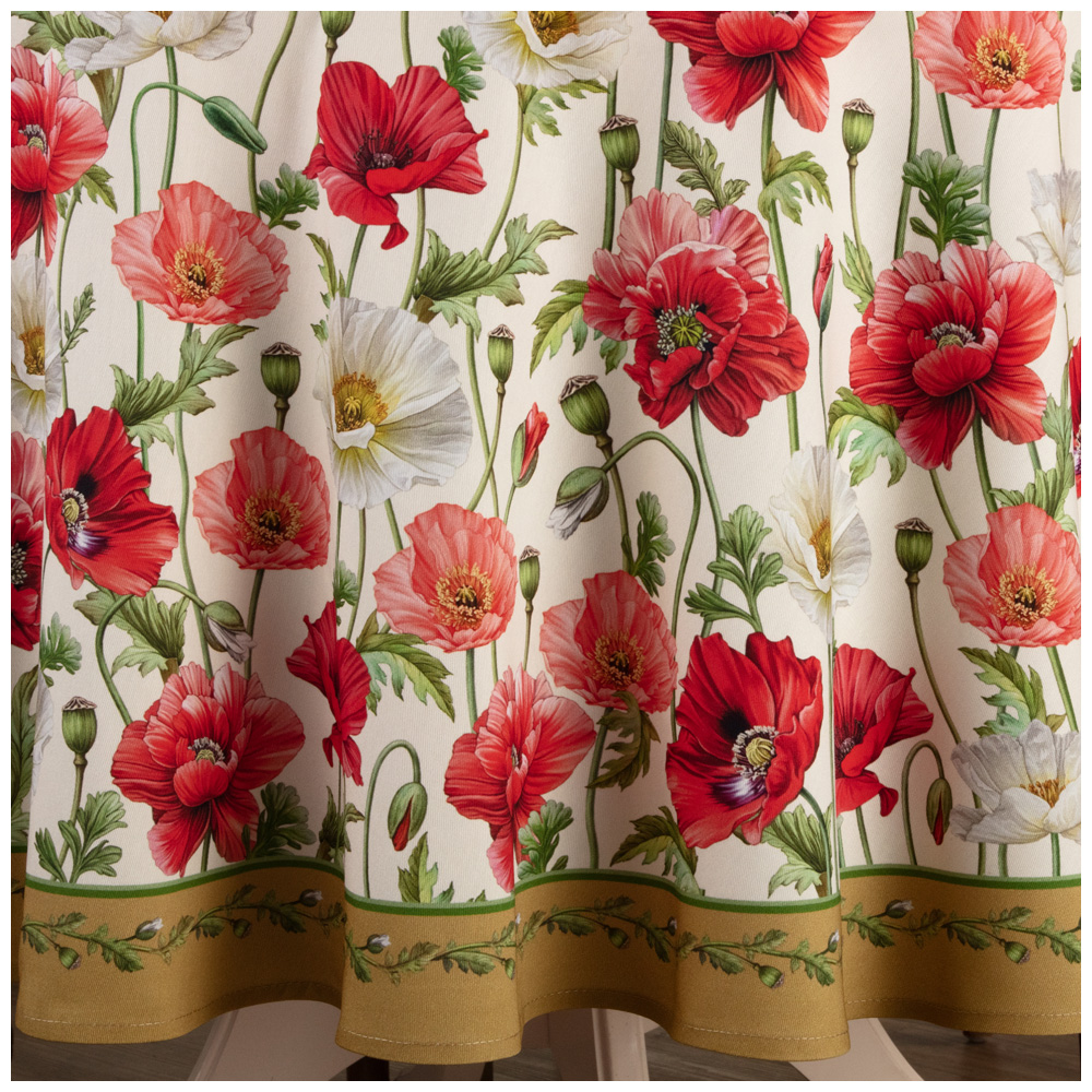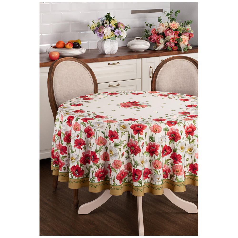 Скатерть круглая маки D185см ,кремовый, 100% хлопок,твил