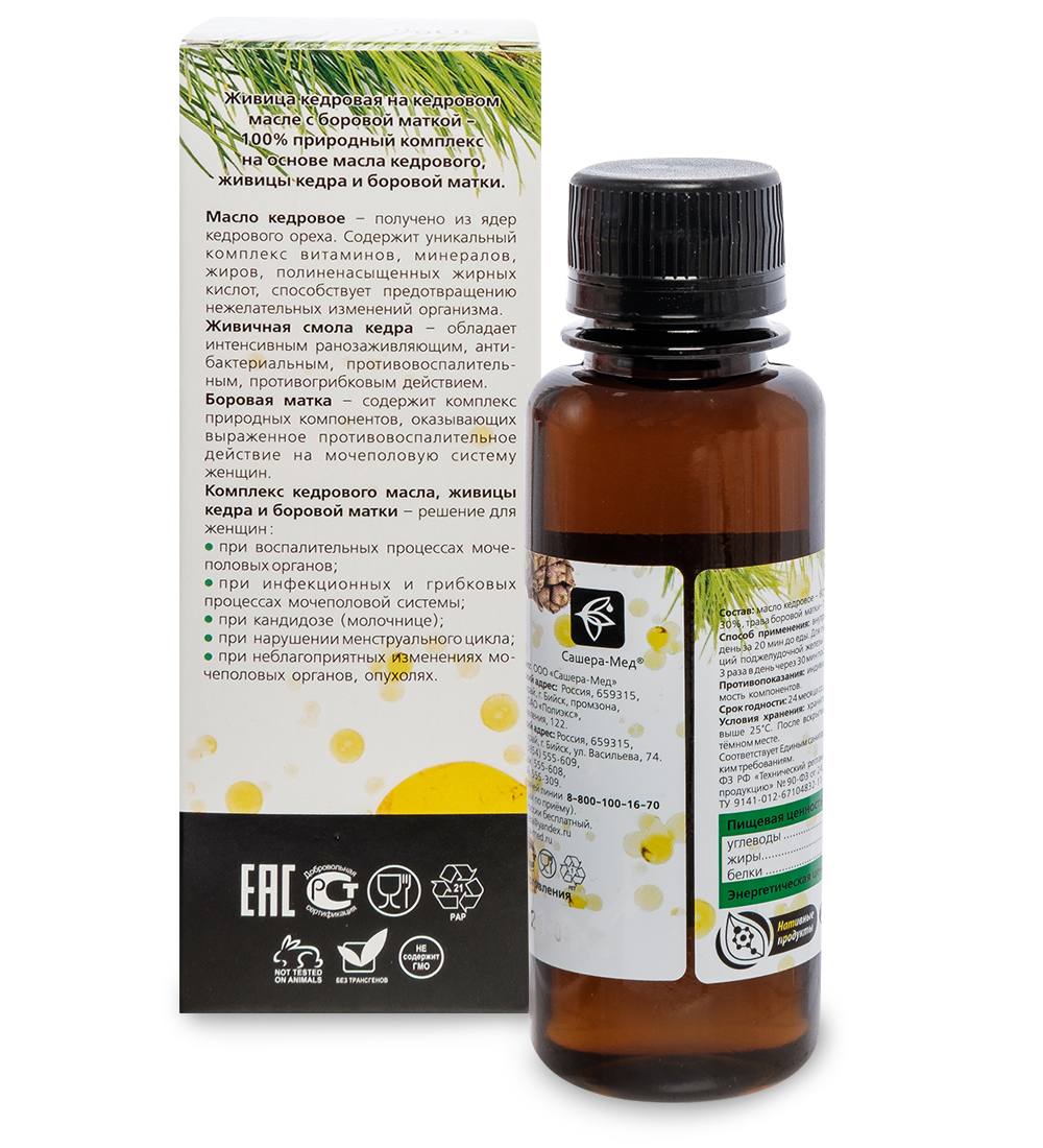 Med-09/15 живица кедровая на кедровом масле с боровой маткой, 100 мл. Параметры товара Страна производства: Россия Размеры упаковки Длина: 5 см; Ширина: 4 см; Высота: 14 см; Вес: 0.14 кг.