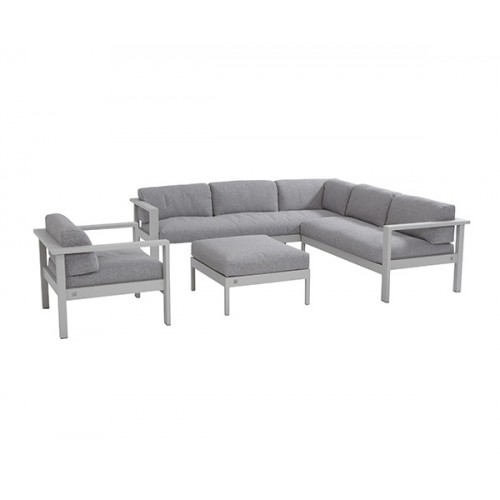 Galaxy - это безукоризненные линии и уникальные ткани сидений и подушек, которые предадут ощущение эксклюзивности. Материалы и цвета: каркас мебели выполнен из алюминия с порошковым покрытием, спинка и сидение изготовлены из специальной пены, пропускающей воду, обшиты уличной тканью серого цвета
