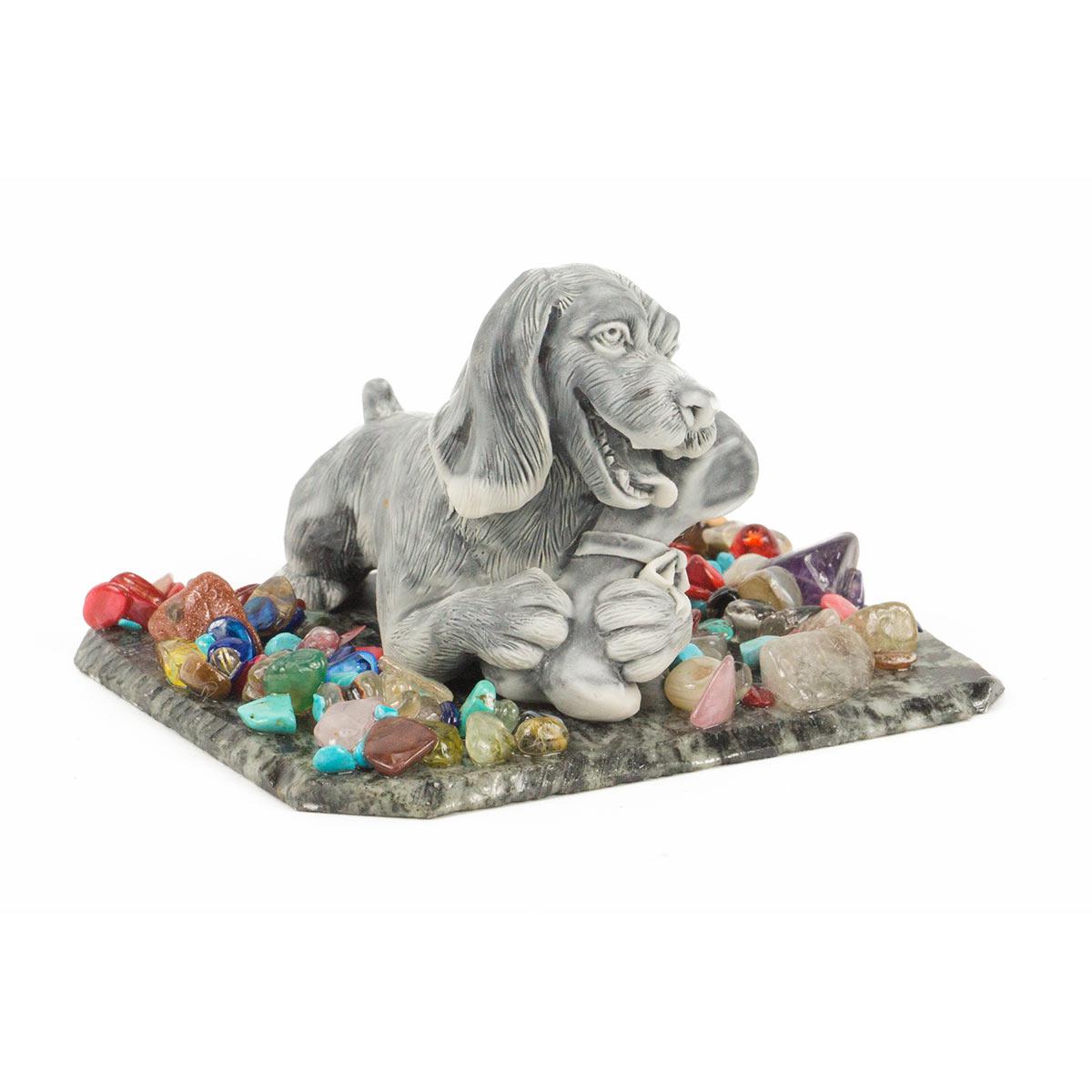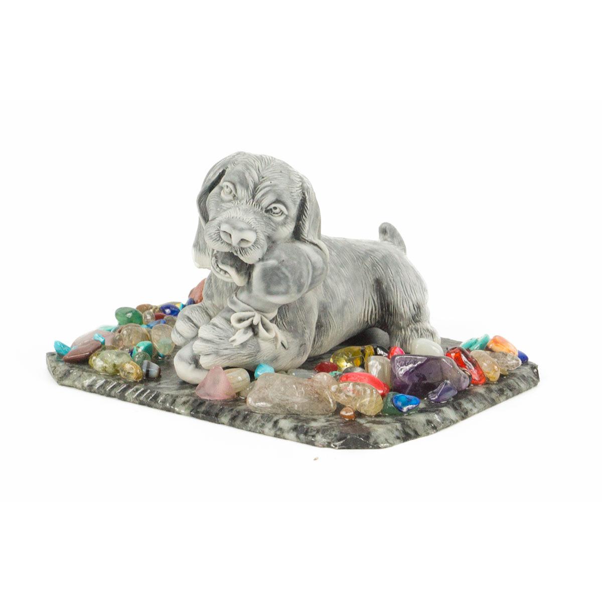 Сувенир "собака с косточкой" змеевик мрамолит самоцветы 100х80х6