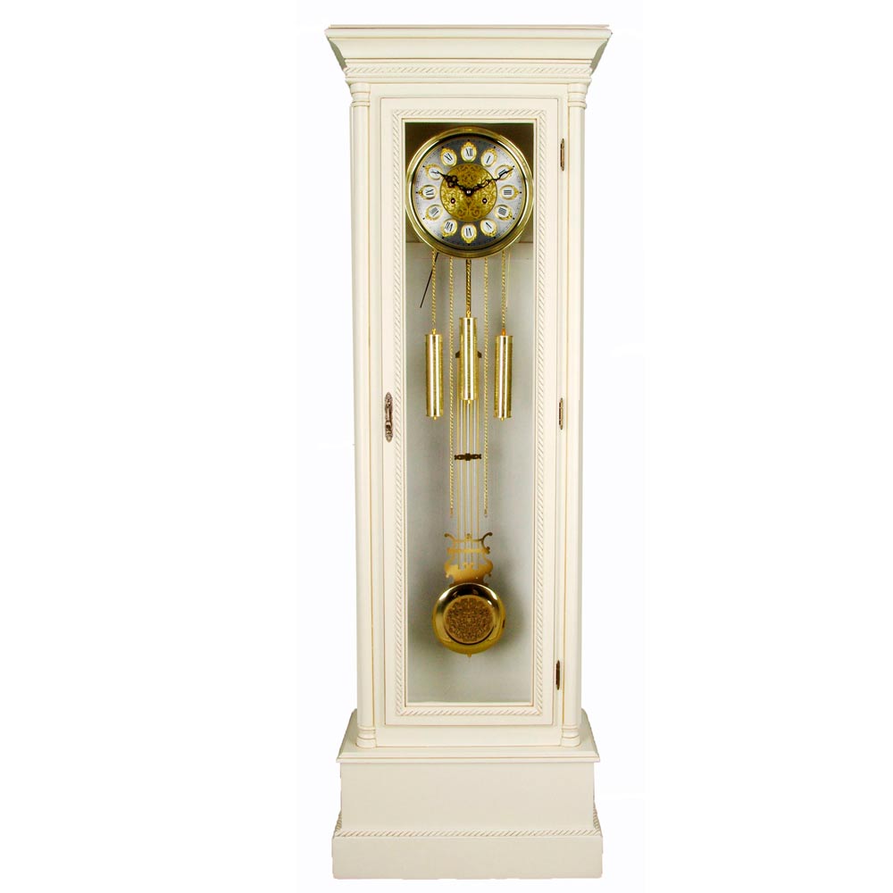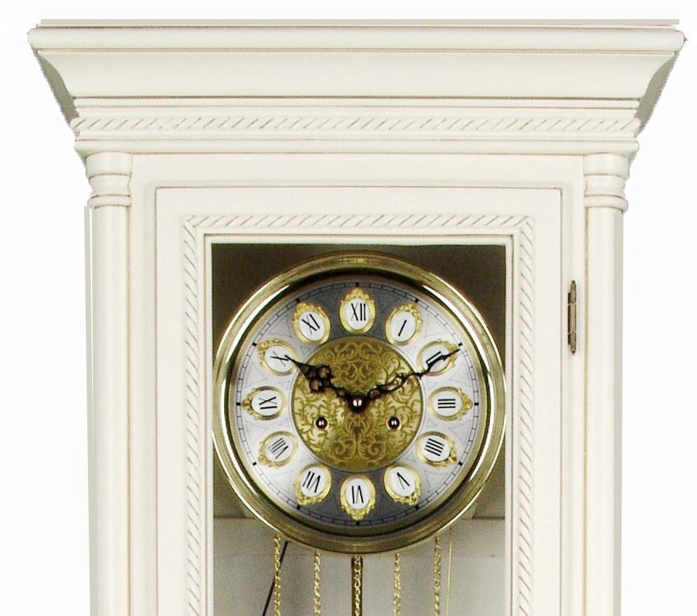 Напольные механические часы 8618-ivm. Напольные механические часы Dinastiya 8618-IVM Напольные белые механические часы Dinastiya 8618-IVM имеют надежный механизм с 3-ми струнами и высоту 193 см. Механизм механический с цепным подвесом гирь, пружинный завод на 31 день. Маятник качается. Гири в качестве имитации для декора. Получасовой бой и бой каждый час по количеству часов. Циферблат чеканный с римскими цифрами, фигурные стрелки, маятник в виде лиры. Маятник и гири металлические, золотистого цвета. Фронтон резной. Боковые стеклянные окна. Характеристики часов Dinastiya 8618-IVM: Корпус: дерево, покрыт рояльным лаком. Цвет: Слоновая кость с патиной. Размер: 194x63x29 см Размер упаковки: 199*70*36 см Вес: 30 кг. Гарантия: 1 год Бой каждый час Бим-Бам по количеству часов и один раз каждые полчаса. Завод (ход): 31 день Ручное отключение боя. Секундная стрелка: нет. Без мелодии.