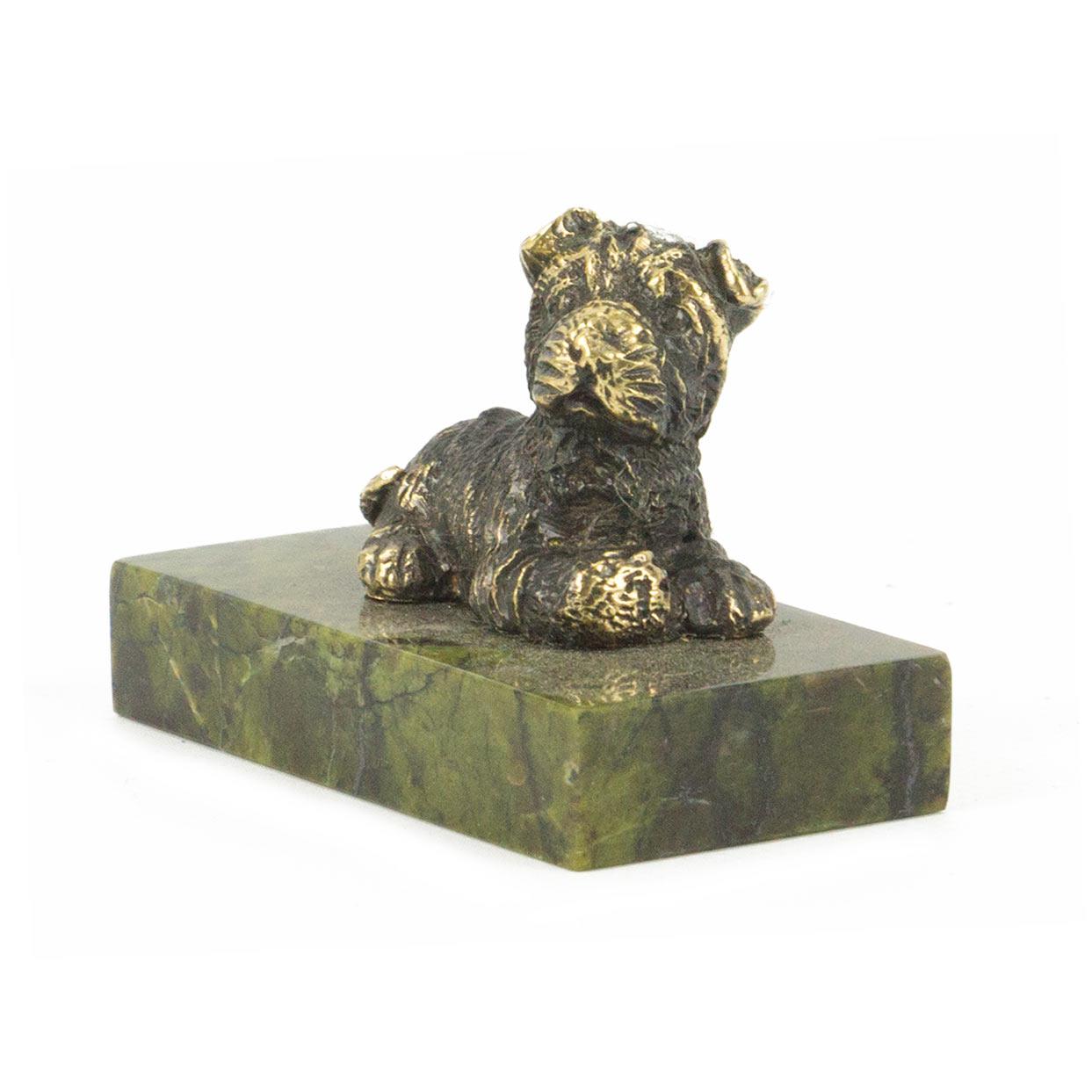 Статуэтка "собачка малая №5" бронза змеевик 27х50х35 мм 70 гр.