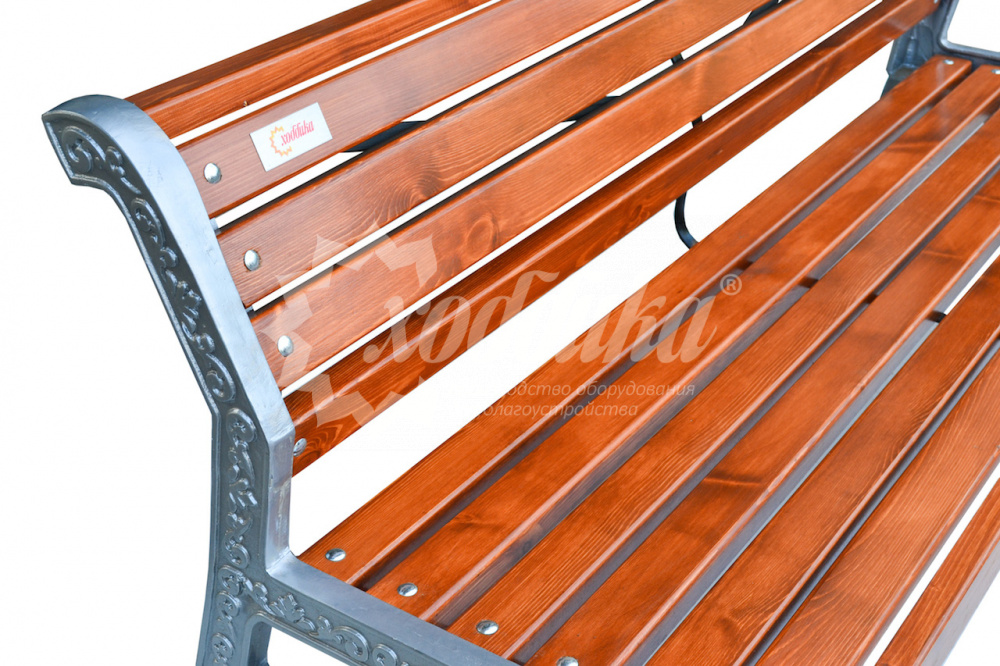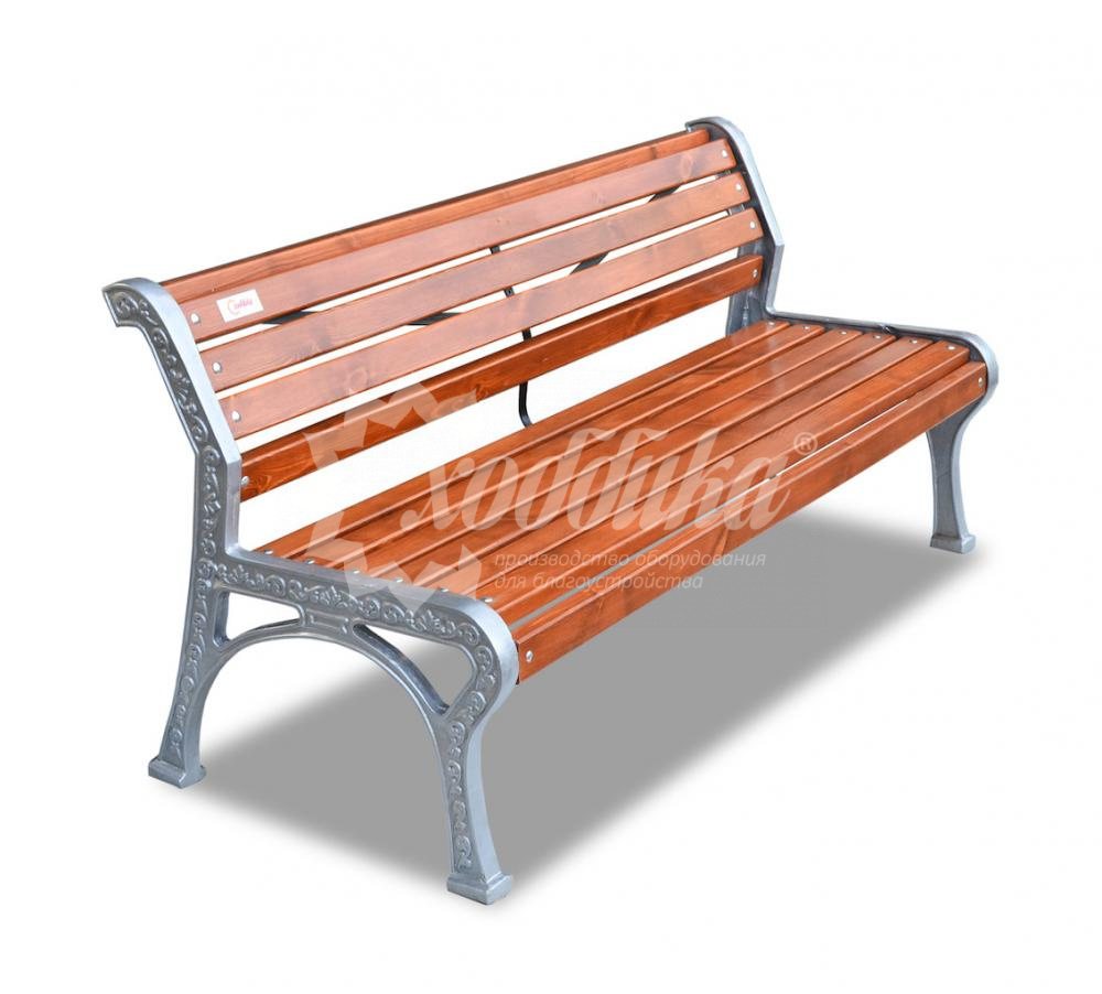 Скамейка алюминиевая «ретро стиль» без подлокотников 1,8 м. Подробные характеристики Скамейка поставляется в разобранном виде! Лиственница лучше чем сосна! Материалы: Опоры: Алюминиевое художественное литьё. Не требуют вообще никакой обработки и защиты лако-красочными материалами. По вашему желанию опоры могут быть покрыты порошковой полимерной краской. Возможность выбора цвета по каталогу RAL. Стандартный цвет (по умолчанию) - серебристый. Сиденье и спинка: Брус - отборная лиственница (вариант исполнения: композитные материалы) различного сечения. Огнебиозащитные пропитки + тонировочный состав с антисептиком + два слоя яхтного лака с промежуточным шлифованием. Возможность выбора цвета из палитры. Фурнитура: Оцинкованная. Возможность выбора цвета фурнитуры по каталогу RAL. Стандартный цвет (по умолчанию) - серебристый. Возможность использования потайной/скрытой фурнитуры. Технические характеристики: Высота: 760 мм Ширина: 650 мм Длина: 600 - 3000 мм Высота сиденья: мм Ширина сиденья: мм Вес: кг О модели Опоры скамейки изготовлены из алюминиевого литья высокого качества. Вы будете приятно удивлены безупречным качеством, которое достигается благодаря мастерской работе наших специалистов. Лиственничный брус, используемый при производстве скамейки, долговечен и при должном использовании не требует особого ухода. Данный модельный ряд предполагает несколько вариантов исполнения. Вы можете выбрать необходимый размер, цвет и материал, из которых будут отлиты опоры. Варианты цвета на выбор: , палисандр, рябина, тик,
