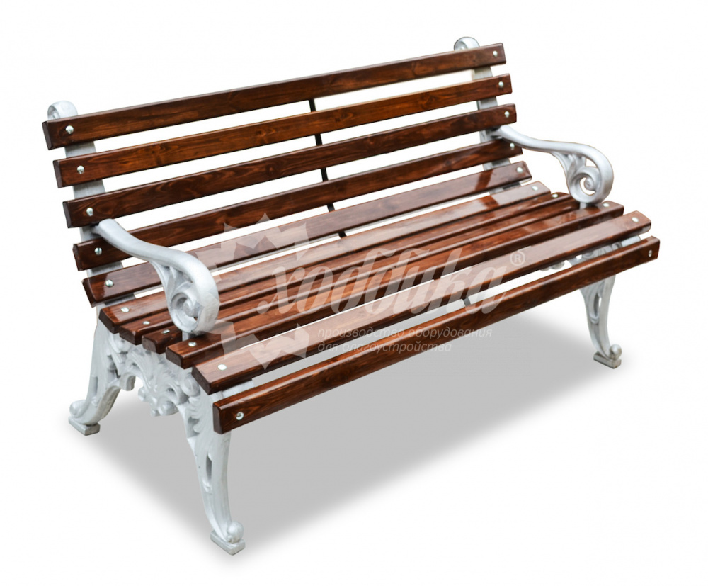 Скамейка алюминиевая «белые ночи» с подлокотниками 3,0 м. Подробные характеристики Скамейка поставляется в разобранном виде! Лиственница лучше чем сосна! Материалы: Опоры: Алюминиевое художественное литьё. Не требуют вообще никакой обработки и защиты лако-красочными материалами. По вашему желанию опоры могут быть покрыты порошковой полимерной краской. Возможность выбора цвета по каталогу RAL. Стандартный цвет (по умолчанию) - серый. Сиденье и спинка: Брус - отборная лиственница (вариант исполнения: композитные материалы) различного сечения. Огнебиозащитные пропитки + тонировочный состав с антисептиком + два слоя яхтного лака с промежуточным шлифованием. Возможность выбора цвета из палитры. Фурнитура: Оцинкованная. Возможность выбора цвета фурнитуры по каталогу RAL. Стандартный цвет (по умолчанию) - серебристый. Возможность использования потайной/скрытой фурнитуры. Технические характеристики: Высота: 800 мм Ширина: 660 мм Длина: 600 - 3000 мм Высота сиденья: 410 мм Ширина сиденья: 500 мм Вес: от 60 кг О модели Очарование скамейки «Белые ночи» из алюминия в ее изящных опорах, которые наряду с ламелями из лиственницы делают ее вне конкуренции. Вы будете приятно удивлены неповторимому рисунку алюминиевого литья и крепчайшему брусу из сибирской лиственницы, которому не страшны атмосферные осадки. И в зной, и в стужу на протяжении долгих лет скамейка «Белые ночи» будет радовать своей теплотой и долговечностью. Варианты цвета на выбор: , махагон, палисандр, тик,