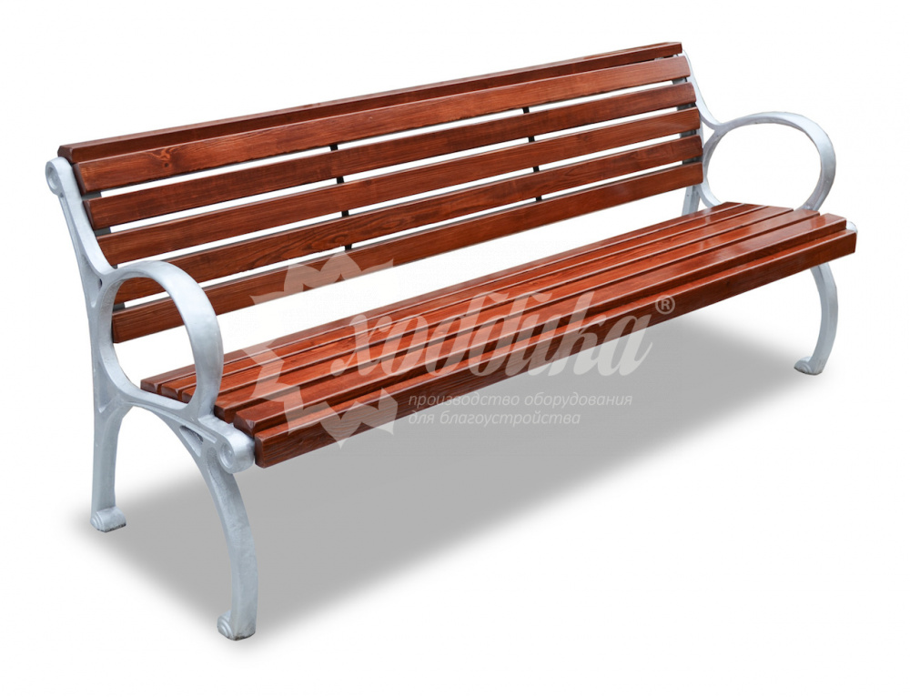 Скамейка алюминиевая «квартал» 1,5 м. Подробные характеристики Скамейка поставляется в разобранном виде! Лиственница лучше чем сосна! Материалы: Опоры: Алюминиевое художественное литьё. Не требуют вообще никакой обработки и защиты лако-красочными материалами. По вашему желанию опоры могут быть покрыты порошковой полимерной краской. Возможность выбора цвета по каталогу RAL. Стандартный цвет (по умолчанию) - серебристый. Сиденье и спинка: Брус - отборная лиственница (вариант исполнения: композитные материалы) различного сечения. Огнебиозащитные пропитки + тонировочный состав с антисептиком + два слоя яхтного лака с промежуточным шлифованием. Возможность выбора цвета из палитры. Фурнитура: Оцинкованная. Возможность выбора цвета фурнитуры по каталогу RAL. Стандартный цвет (по умолчанию) - серебристый. Возможность использования потайной/скрытой фурнитуры. Технические характеристики: Высота: 790 мм Ширина: 700 мм Длина: 1500 - 1800 мм Высота сиденья: 440 мм Ширина сиденья: 410 мм Длина посадочного места: 1500 - 1800 мм Вес: от 38 кг Вес версии 1.5 м: кг Вес версии 1.8 м: кг О модели Алюминиевая скамейка Квартал- эксклюзивное предложение от компании Хоббика. Опоры скамейки изготовлены из художественного алюминиевого литья. Характерной особенностью данной модели является наличие закругленных литых подлокотников, а также скрытое крепление деревянных ламелей к алюминиевому основанию. Скамейка оборудована срытой стальной перекладиной, которая устанавливается между алюминиевыми стойками и служит защитой от раскачивания. Для зонирования посадочных мест для данной модели доступна установка дополнительных подлокотников. Установка по необходимости крепления алюминиевых опор к основанию на анкерные болты или путем бетонирования будет препятствовать перемещению скамейки. Варианты цвета на выбор: , груша, еловая зелень, махагон, палисандр, рябина, тик,