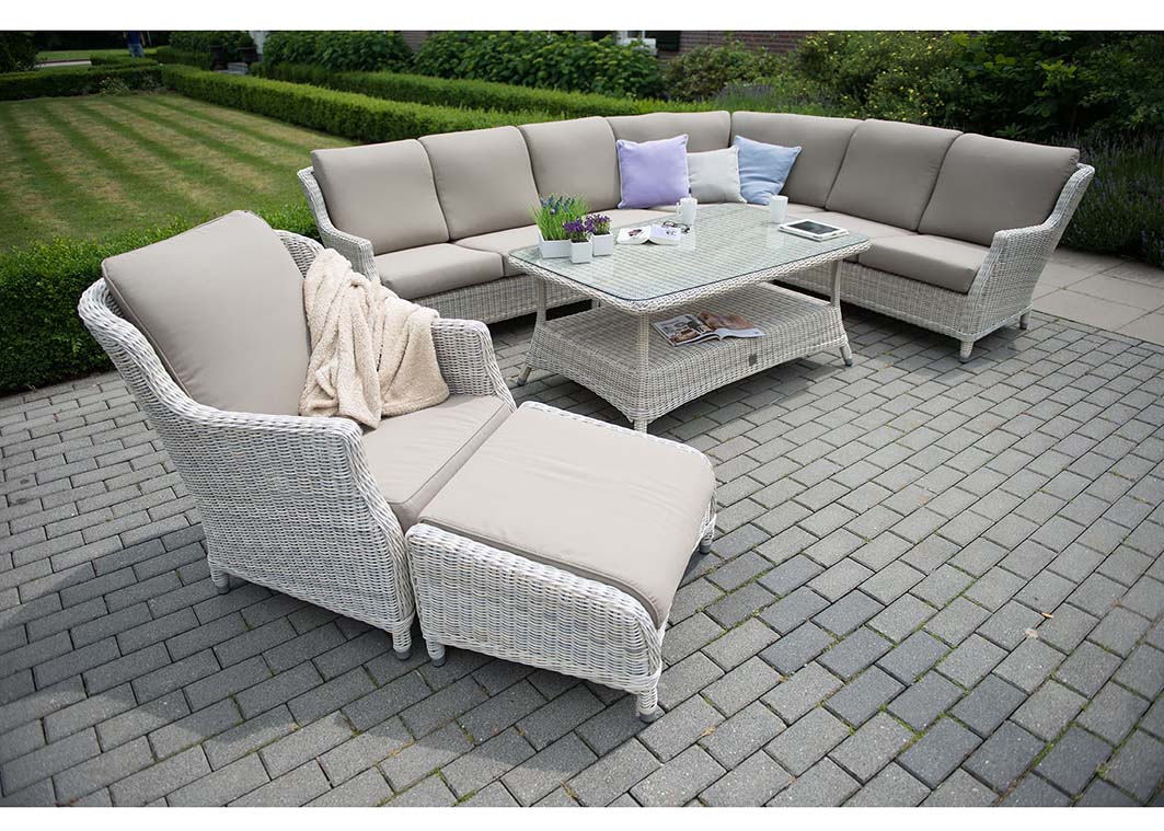 Лаунж зона 4 seasons outdoor brighton, садовая мебель. Садовая мебель Brighton на 100% подходит для наружного использования. Все используемые материалы чрезвычайно устойчивы к погодным условиям. Серия Brighton имеет симпатичную пересеченную рамку сделанную от алюминия с покрытием матовый антрацит. Обивочный материал олефин очень хорошо сохраняет свой цвет. Чехлы легко содержать в чистоте, их можно стирать и сушить в стиральной машине при температуре 30 градусов. Brighton -это идеальная садовая мебель для вашего патио, и она будет оставаться таковой в течение многих лет. Соберите свой собственный идеальный комплект садовой мебели. Комплектация: Левый диванный модуль 1 шт. (212382) Правый диванный модуль 1 шт. (212383) Центральный диванный модуль 1 шт. (212381) Угловой диванный модуль 1 шт. (212380) Кресло 1 шт. (212378) Пуфик 1 шт. (212379) Стол 1 шт. (212385) Так же по Вашему желанию все элементы можно приобрести по отдельности, или дополнить зону любыми элементами данного комплекта. Кресло, см 76 X 82 X 95 Левый диванный модуль, см 126 X 85 X 90 Правый диванный модуль, см 126 X 85 X 90 Угловой модуль, см 170 X 85 X 90 Пуфик, см 76 Х 63 Х 44