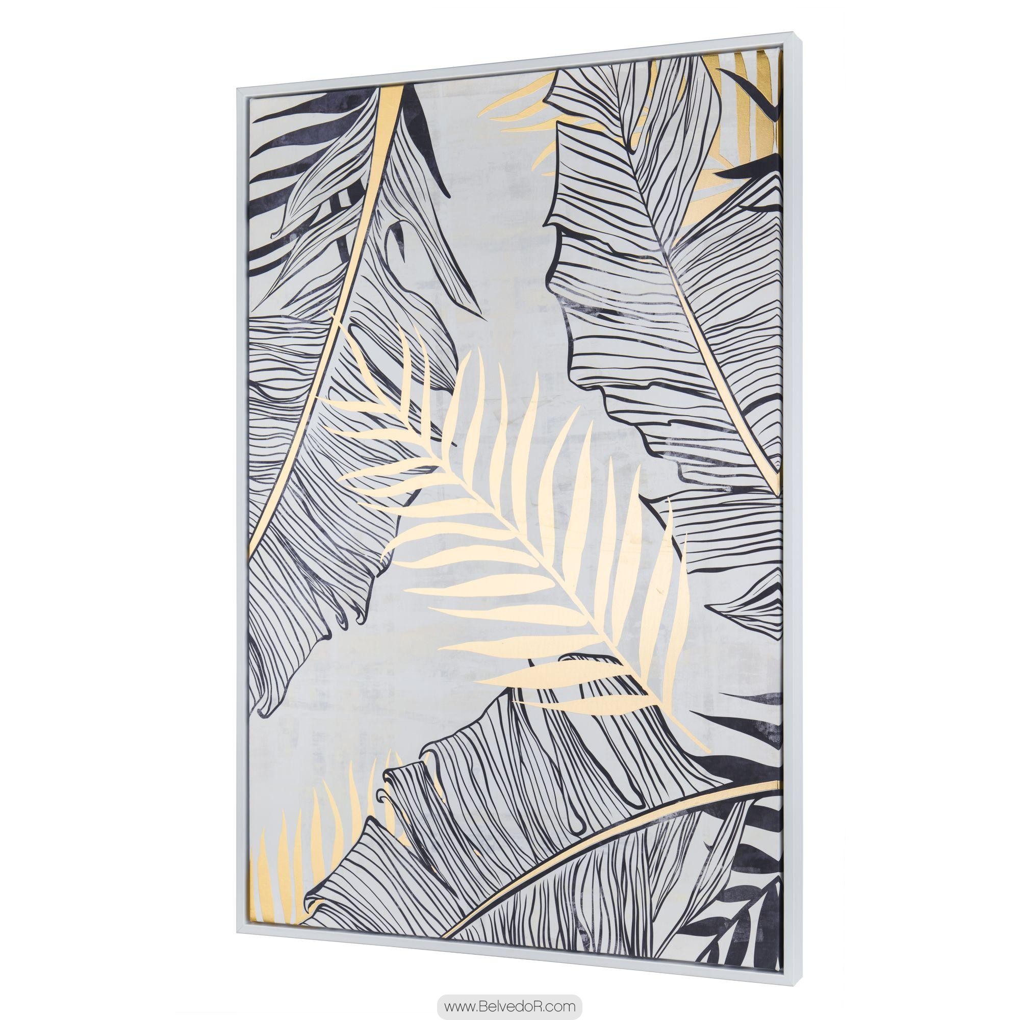 Интерьерное панно. Качественный принт на матовом холсте, декорирование золотой фольгой, подрамник из массива дерева, объемная рама белого цвета.