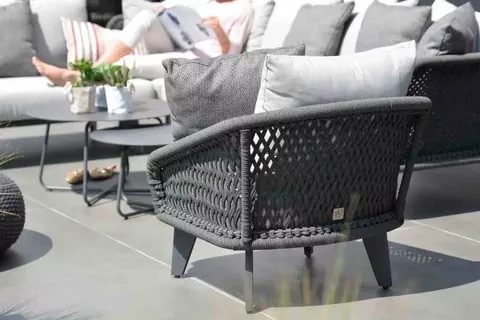 Лаунж зона 4 seasons outdoor belize, садовая мебель. Лаунж зона Belize с необычным тканевым плетением, легко трансформируется в нужную форму. Все модули комплектуются мягкими и упругими подушками для максимального комфорта. Каркас изделий выполнен из прочного алюминия. Комплектация: Диван правый модуль [86791] Диван левый модуль [86798] Диван угловой модуль [86805] Кресло [86812] Стол кофейный Dali 58 [87195] Стол кофейный Dali 73 [87201] Так же по Вашему желанию все элементы можно приобрести по отдельности, или дополнить зону любыми элементами данного комплекта. Кресло, см 89 X 87 X 84 Левый диванный модуль, см 157 X 88 X 71 Правый диванный модуль, см 157 X 88 X 71 Угловой модуль, см 88 X 88 X 71 Журнальный стол, см D73 X 40