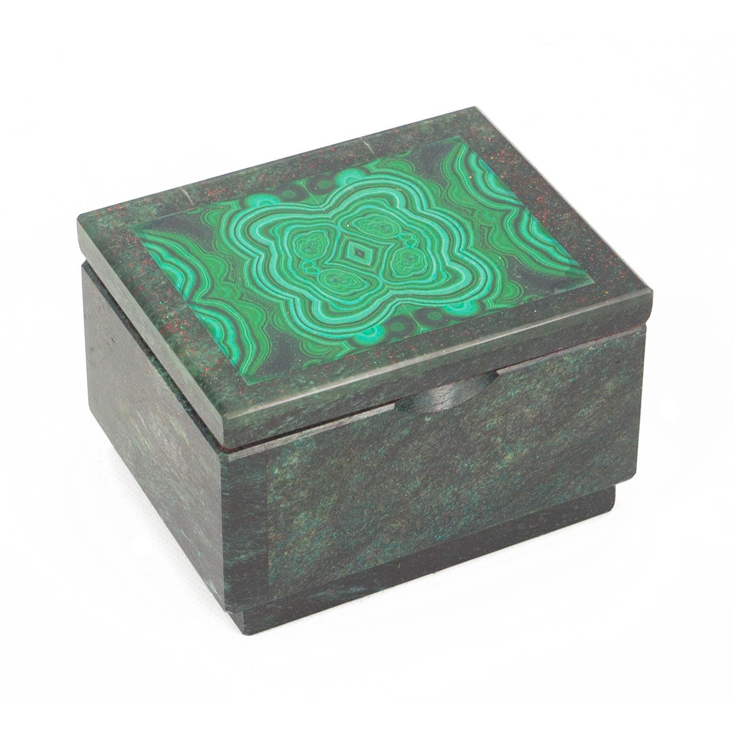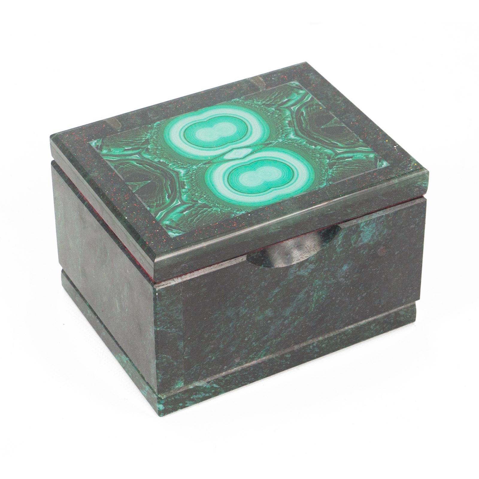 Шкатулка с иллюстрацией под малахит 100х80х65 мм 810 гр.