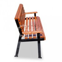 Скамейка уличная «модерн». Подробные характеристики Скамейка поставляется в разобранном виде! Внимание! Остерегайтесь подделок! Материалы: Опоры: Сталь. Покрыты порошковой полимерной краской. Возможность выбора цвета по каталогу RAL. Стандартный цвет (по умолчанию) - черный. Сиденье и спинка: Брус из хвойных пород древесины - ангарская сосна (варианты исполнения: лиственница, композитные материалы, термодерево). Огнебиозащитные пропитки + тонировочный состав с антисептиком + два слоя яхтного лака с промежуточным шлифованием. Возможность выбора цвета из палитры. Фурнитура: Оцинкованная. Стандартный цвет (по умолчанию) - серебристый. Возможность использования потайной/скрытой фурнитуры. Технические характеристики: Длина: 600 - 3000 мм Ширина: 570 мм Высота: 800 мм Ширина сиденья: 400 мм Высота сиденья: 470 мм Вес: от 25,4 кг О модели Скамейка «Модерн» с деревянными подлокотниками обладает удобными посадочными местами. Деревянный подлокотник помимо эстетических свойств служит дополнительной опорой, преимущество которой оценят люди пожилого возраста. Скамейка «Модерн» может быть использована при необходимости создания обеденной группы в едином стиле. Вы можете дополнить скамейку широким садовым столом или удобным креслом, опоры которого выполнены в одном со скамейкой стиле. При необходимости вы можете воспользоваться услугами по сборке скамейки или заказать доставку скамейки в любую точку России. Варианты цвета на выбор: , махагон, палисандр, тик,
