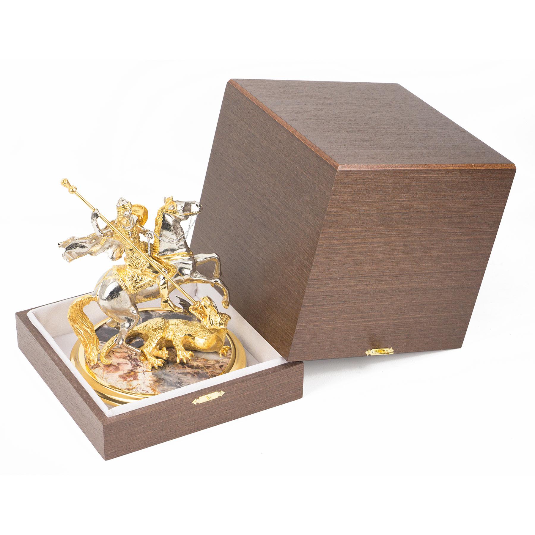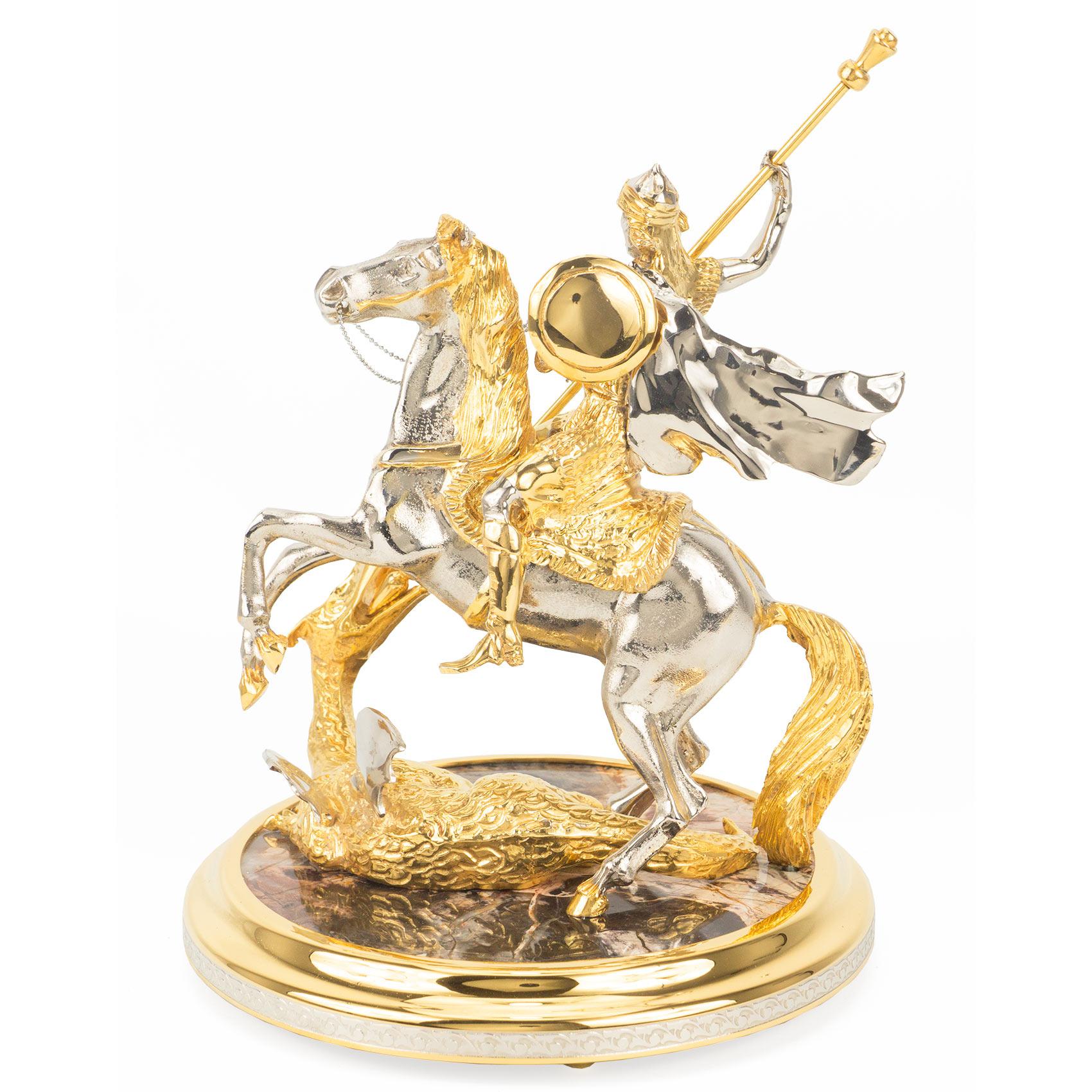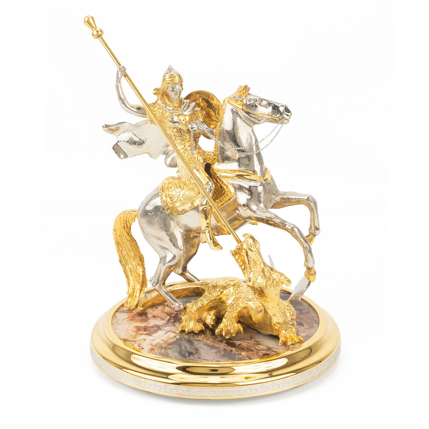 Статуэтка "георгий победоносец" яшма позолота 170х170х210 мм 223. Вес 2230 г Размер 17х17х21 см Материал яшма, латунь, никель, покрытие золотом (999,9).  развернуть описание ▼