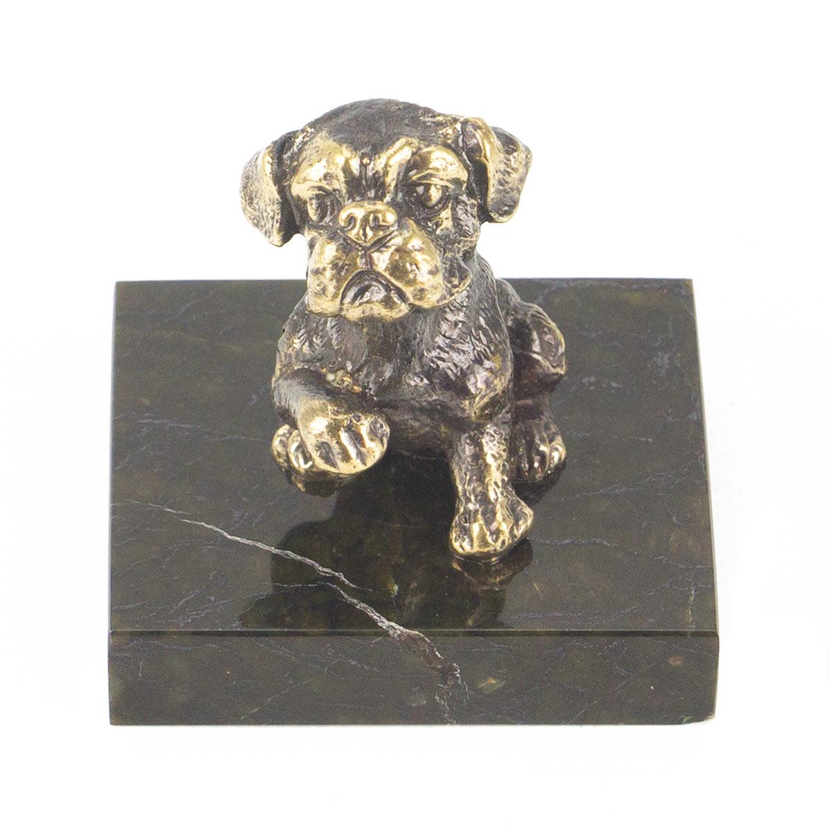 Статуэтка "собачка средняя №4" бронза змеевик 50х50х55 мм 151 гр