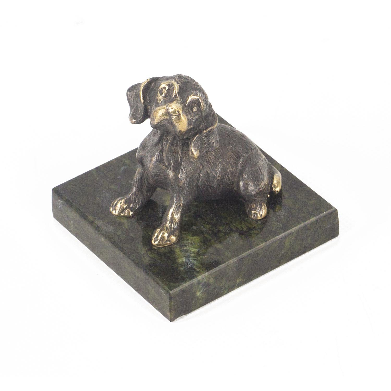 Статуэтка "собачка средняя №8" бронза змеевик 50х50х45 мм 146 гр