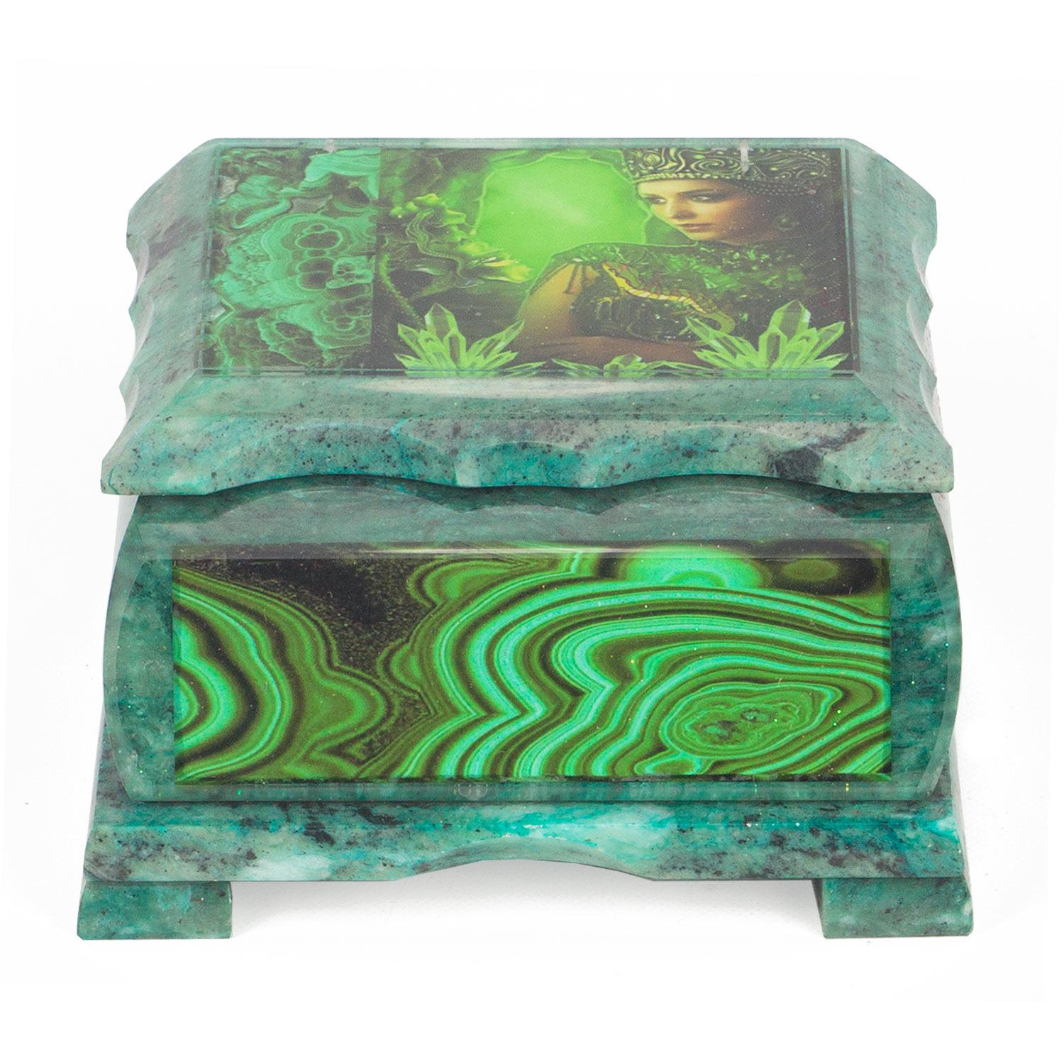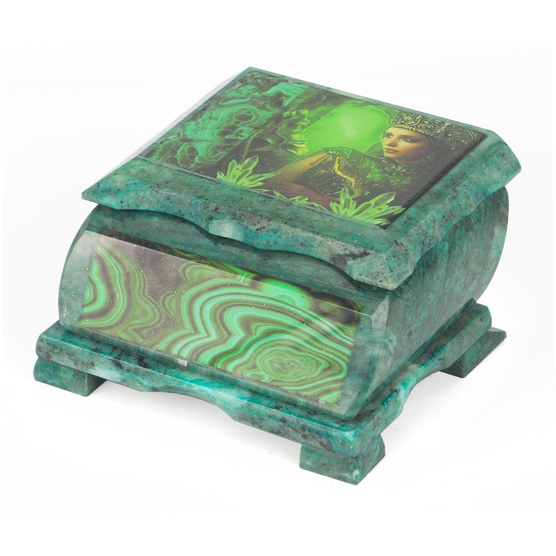 Шкатулка хозяйка медной горы с иллюстрацией под малахит 130х100х75 мм 1150