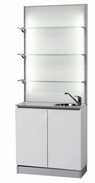 Лаборатория r-mode. Модульная система лаборатории/витрины R-MODE - это оригинальный дизайн, удобство и функциональность. Каркас лаборатории выполнен из белого матового ламината, цоколь алюминиевый. Напольные тумбы оснащены столешницей из прочного стекла. Каркас витрины выполнен из алюминия, полки из стекла. Витрина оснащена тремя регулируемыми стекляными полками и светодиодной подсветкой. Возможные комплектации: 882/B - Модульный элемент: напольная тумба, две распашные двери, длина 80 см 883/B - Модульный элемент: напольная тумба со стальной раковиной и смесителем, две распашные двери, длина 80 см 885 - Модульный элемент: навесная витрина с тремя регулируемыми стекляными полками и светодиодной подсветкой, длина 80 см 885I - Модульный элемент: навесная витрина с тремя регулируемыми стекляными полками, светодиодной подсветкой и выбранным клиентом сменным изображением, длина 80 см Размер (ДхШхВ): 80х45х210 см Цена на сайте указана за комплектацию: 882/B - Модульный элемент: напольная тумба, две распашные двери, длина 80 см - 1 шт. 885 - Модульный элемент: навесная витрина с тремя регулируемыми стекляными полками и светодиодной подсветкой, длина 80 см - 1 шт. Стоимость модели, представленной на фото, может отличаться от цены, указанной на сайте. Артикул: 882/B+885 Бренд: Pietranera