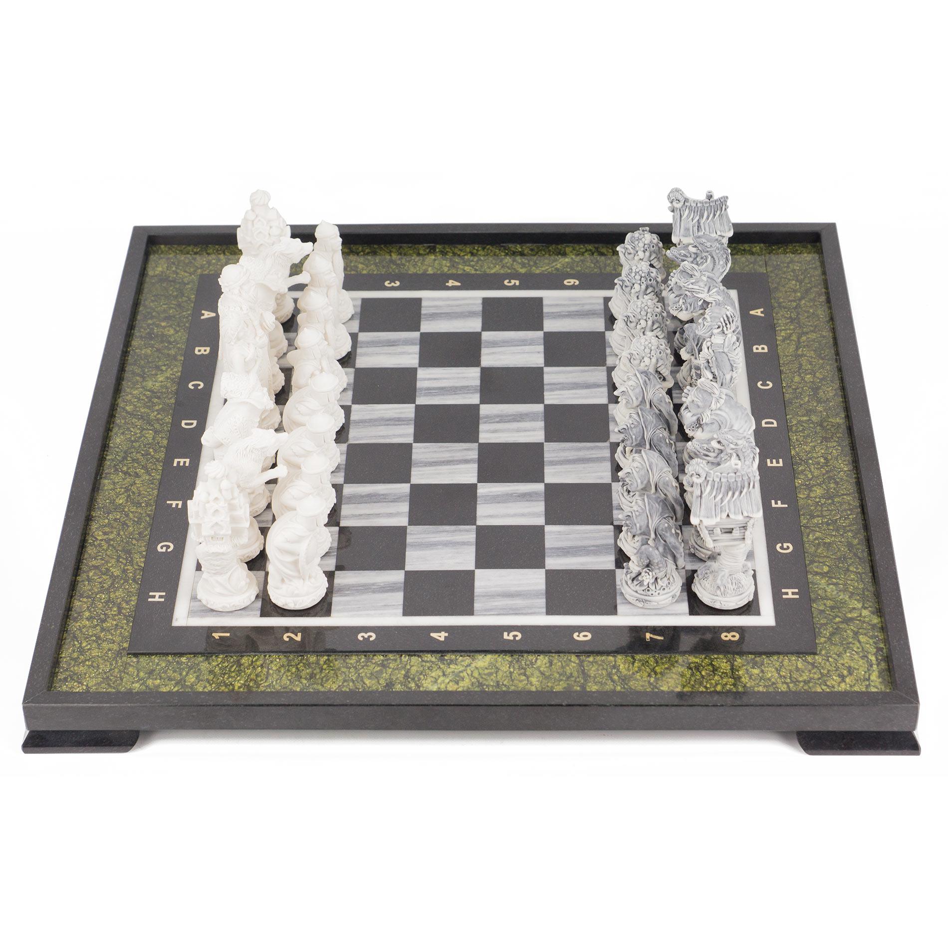Шахматы "русские сказки" змеевик мрамолит 47х47см