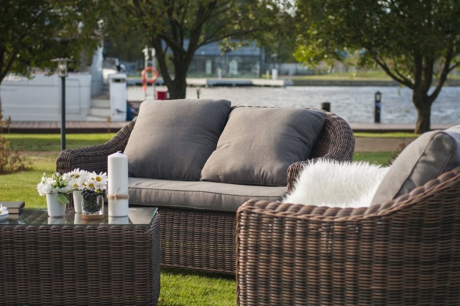 Подушки выполнены из водостойкой полиэфирной ткани для защиты мебели от дождя и солнца