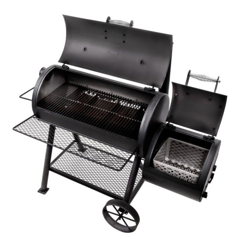 Коптильня oklahoma joes highland reverse flow для сада. Наслаждайтесь улучшенной производительностью и универсальными возможностями с коптильней Oklahoma Joes® Highland Reverse Flow. Оклахома Джо - культовый американский смокер не нуждающийся в представлении. Компания, основанная Джо Дэвидсоном в Оклахоме, уже больше 30 лет производит легендарные американские коптильни. На них многократно выигрывались все основные соревнования питмастеров в США, включая Jack Daniels World Championship. Модель Highland Reverse Flow это коптильня, которая может работать не только в прямом режиме (офсет), но и в продвинутом, реверсном режиме копчения. При реверсном режиме дым проходит в основной камере сначала в одну сторону, а затем уходит в трубу в противоположной стороне. Это дает более равномерное распределение температуры по всей коптильной камере. Выходную трубу можно установить с любой стороны, организовав как прямой поток (offset), так и реверсный. Установлены ненагревающиеся ручки на коптильной камере и на очаге. Просторная дополнительная полка на всю длину коптильной камеры Термометр встроенный в крышку. Опционально есть возможность установить второй термометр. Гарантия 10 лет Вид топлива Дрова и уголь Материал Сталь 4 мм Транспортировочные колеса Да Боковые пристолья Да