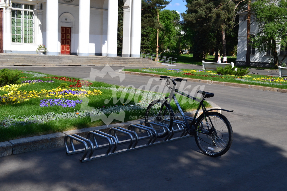 Велопарковка 7-ми местная velo-37 7 мест сталь. Подробные характеристики Материалы: Парковка: нержавеющая сталь. Технические характеристики: Кол-во мест: 7 Длина: 2870 мм Ширина: 600 мм Высота: 265 мм Вес: от 27 кг О модели Велосипедная парковка изготовлена из нержавеющей трубы и профиля. Возможность крепления в грунт методом бетонирования или анкерным методом. Вело-парковка может крепиться к полу или стене по желанию покупателя.