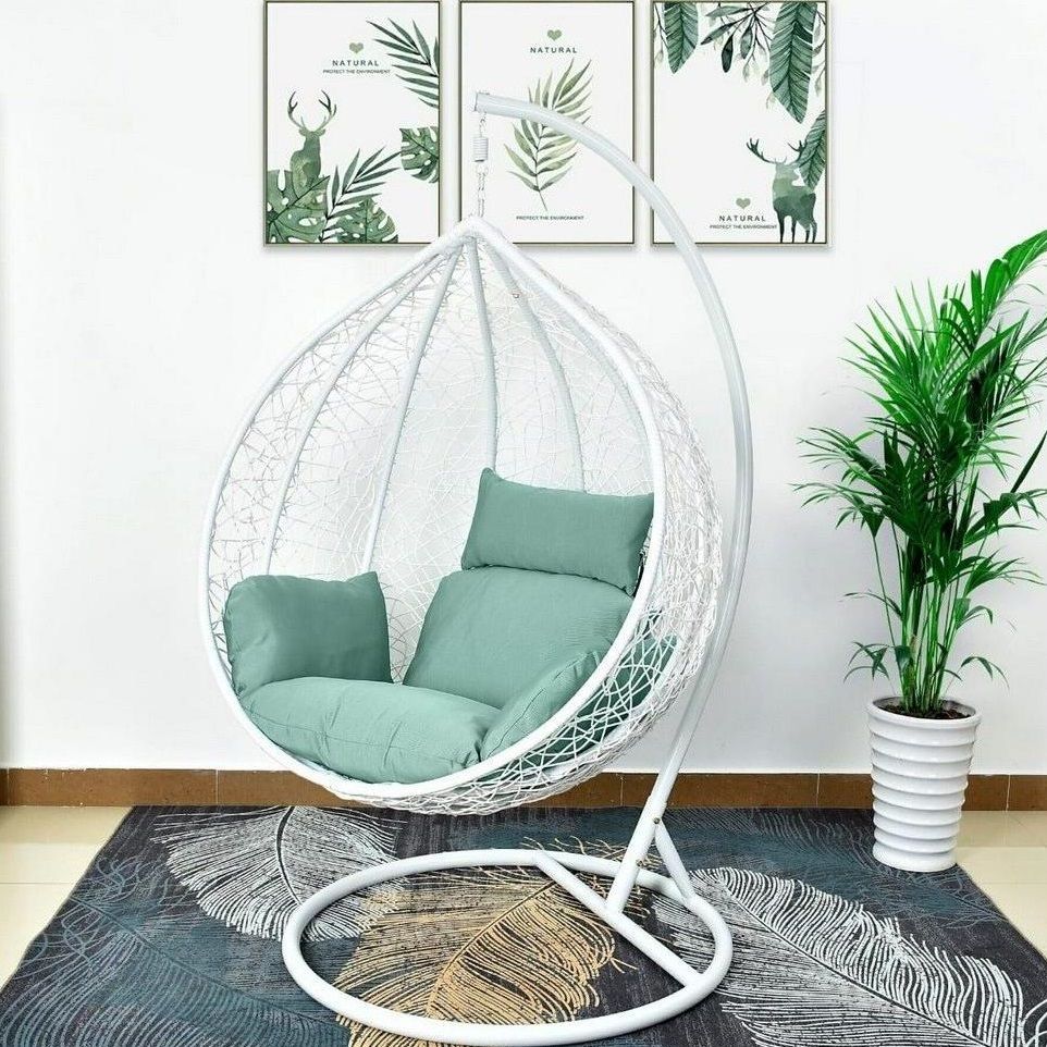 Подвесное кресло cocoon chair 168 xl white, садовая мебель. Стойка: H2,0xD1,0 м, nbsp Каркас сталь. Материал плетения на корзине: искусственный ротанг белого цвета. Подушка цвет ментол. Ткань с водоотталкивающей пропиткой. Размер, см H119 х W107 х D71 Материал каркаса Углеродистая сталь Материал изделия Искусственный ротанг Максимальная нагрузка, кг 150 Цвет Белый