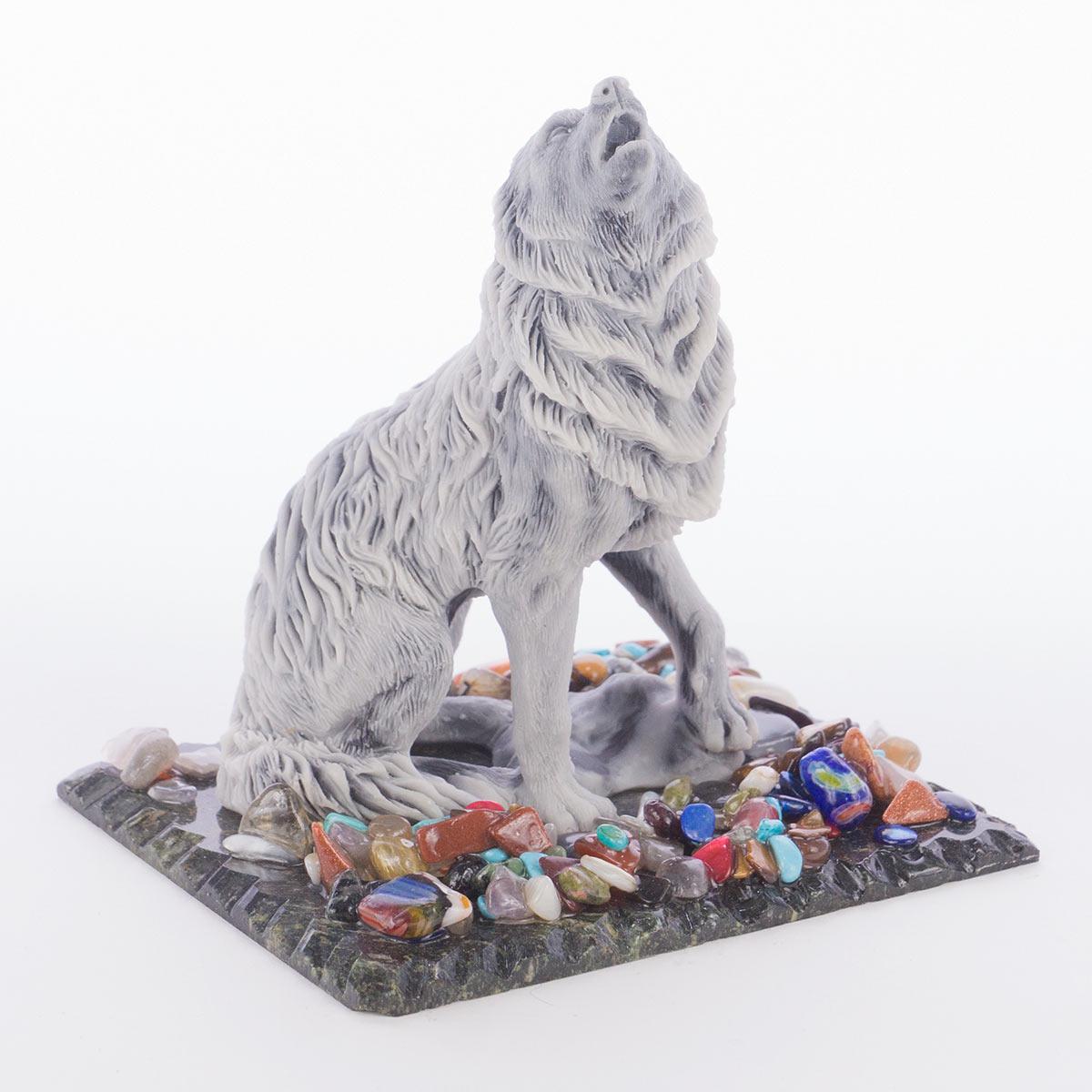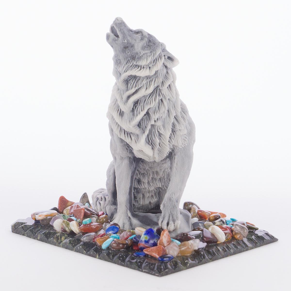 Сувенир "волк воющий" змеевик мрамолит самоцветы 100х80х105 мм 2