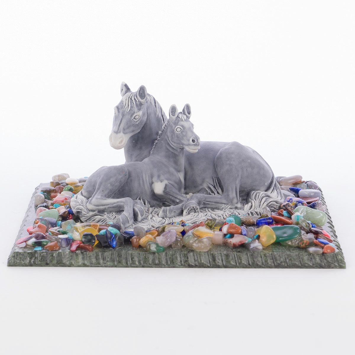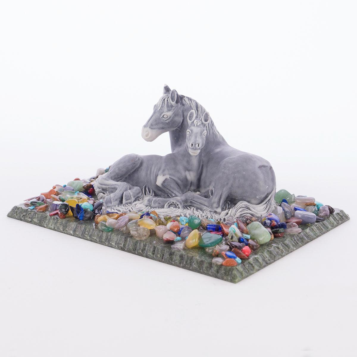 Сувенир "лошадь с жеребенком" змеевик мрамолит самоцветы 150х115