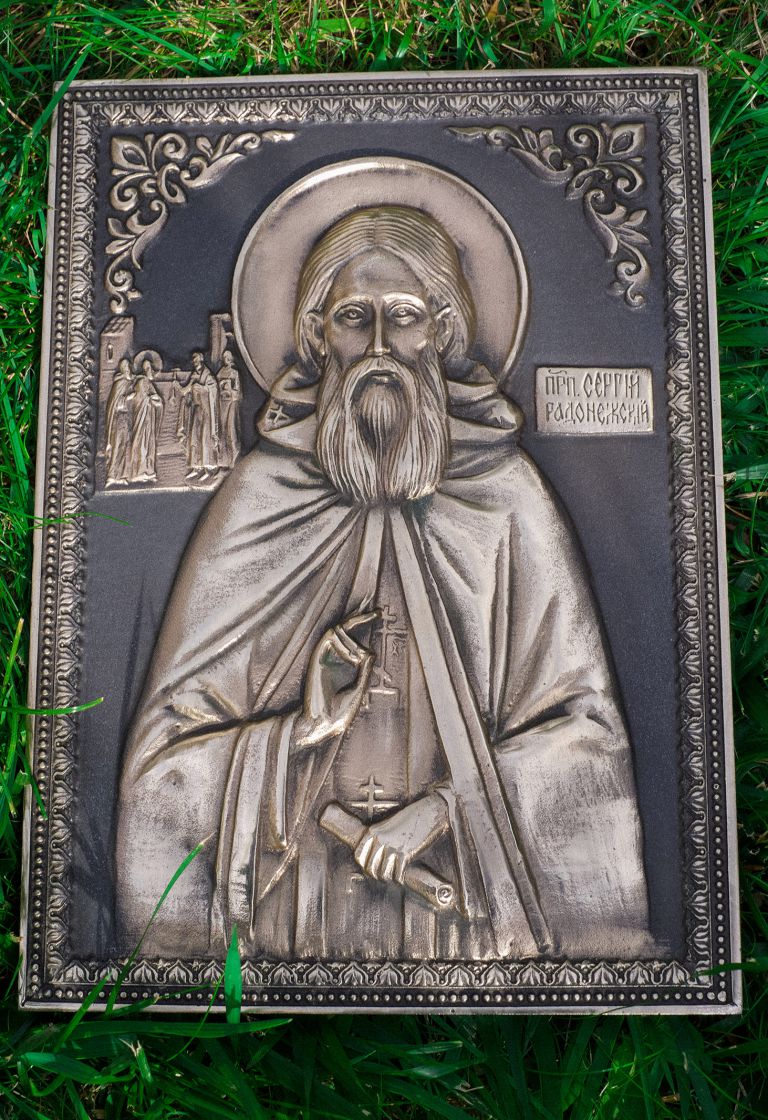 Икона святой преподобный сергий радонежскский. Икону Преподобного Сергия Радонежского принято считать одной из основных святынь в Православии. Еще во время своей земной жизни этот святой был настоящим христианином, который вел смиренный образ жизни. Был трудолюбивым, верным и милосердным. Именно благодаря этому он и заслужил уважение церкви и народную любовь. усмиряется гордыня,так как это считается одним из самых тяжелейших грехов; получают помощь в нуждах своих; благодатный совет и наставление; излечиваются те, кто болел. Зачастую перед этим ликом молятся об успехах в образовании и духовном здоровье детей. Иконы отливаются по индивидуальному заказу, возможна отливка дарственной надписи на оборотной стороне. Ручная работа.