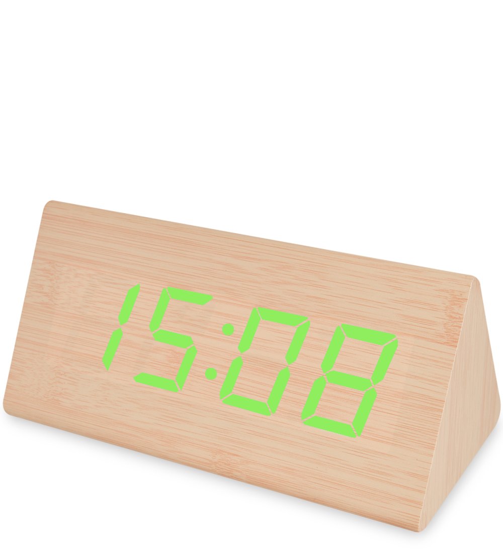 Ял-07-21/ 2 часы электронные бол. треугольные (бежевые с зеленым циферблат