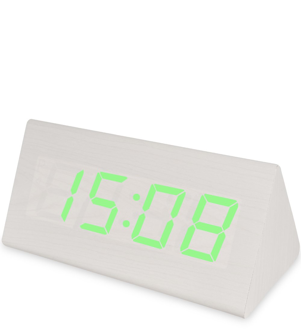 Ял-07-21/11 часы электронные бол. треугольные (белые с зеленым циферблатом