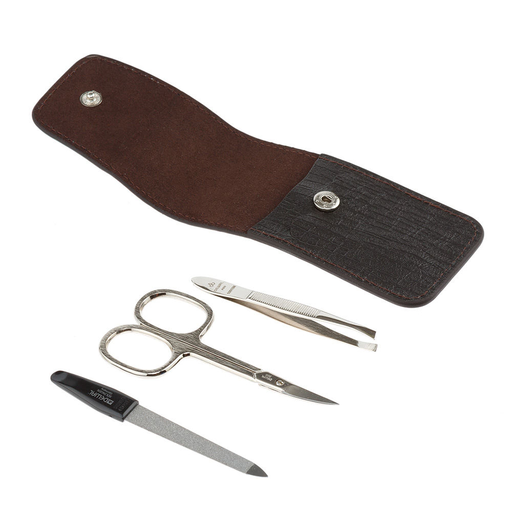 Маникюрный набор Dewal, 3пр. футляр: натуральная кожа, цвет коричневый