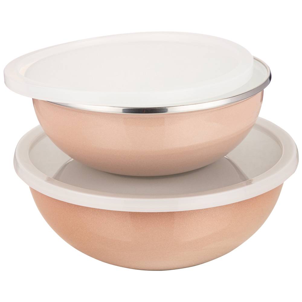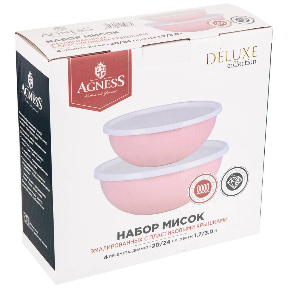 Набор мисок эмалиров. с пластик. крышками,с эффектом металлик серия Deluxe