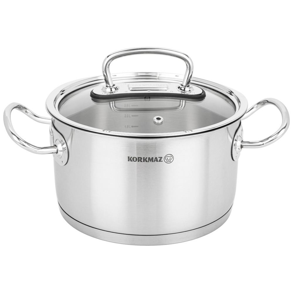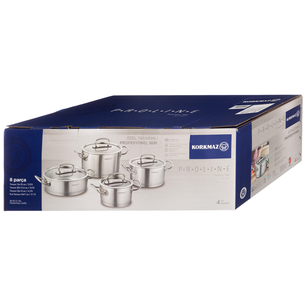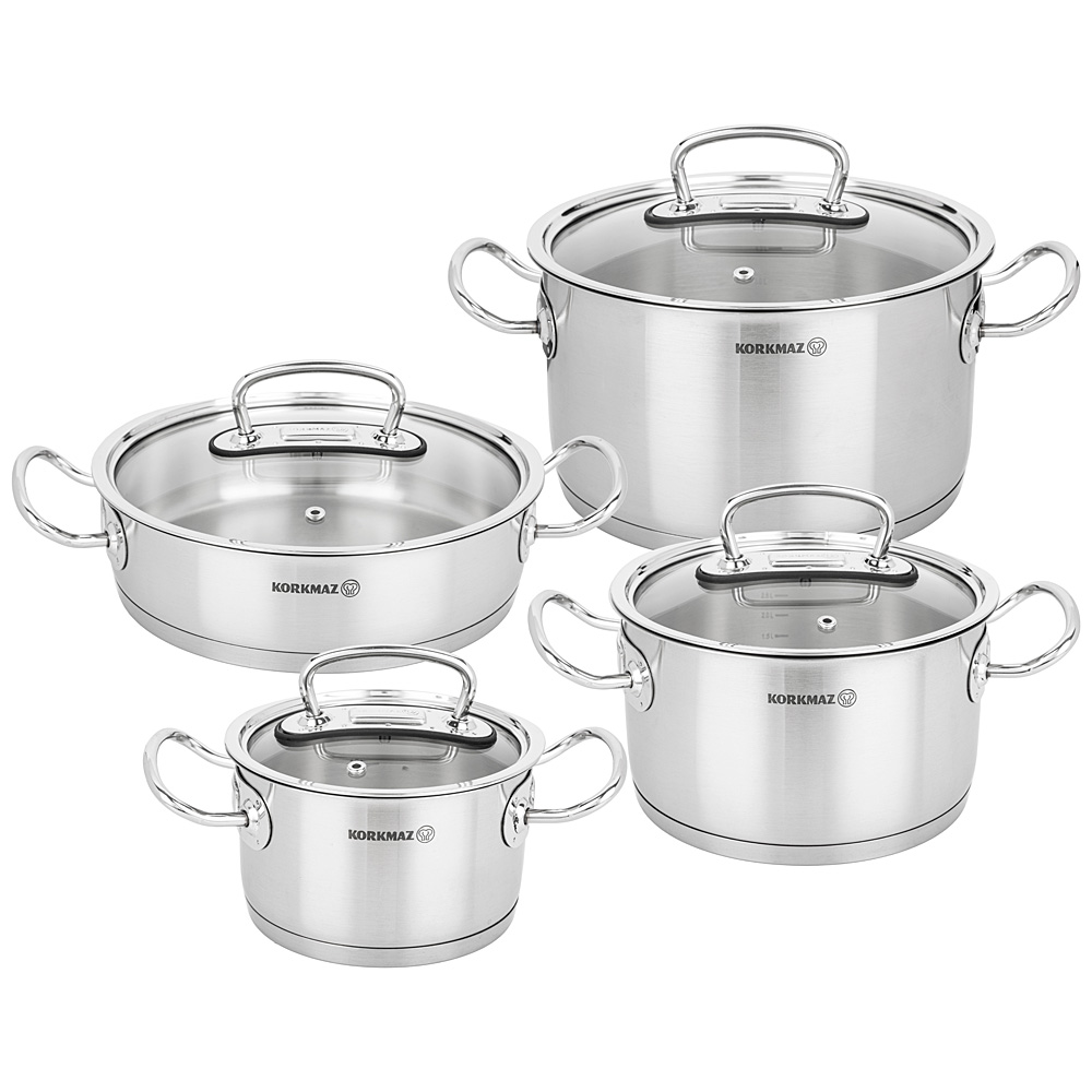 Набор кастрюль Korkmaz со стекл.крыш. серия Proline 8 пр. 2/4/6,3/3,1л разм.16х10/20х12,5/24х14/24х7