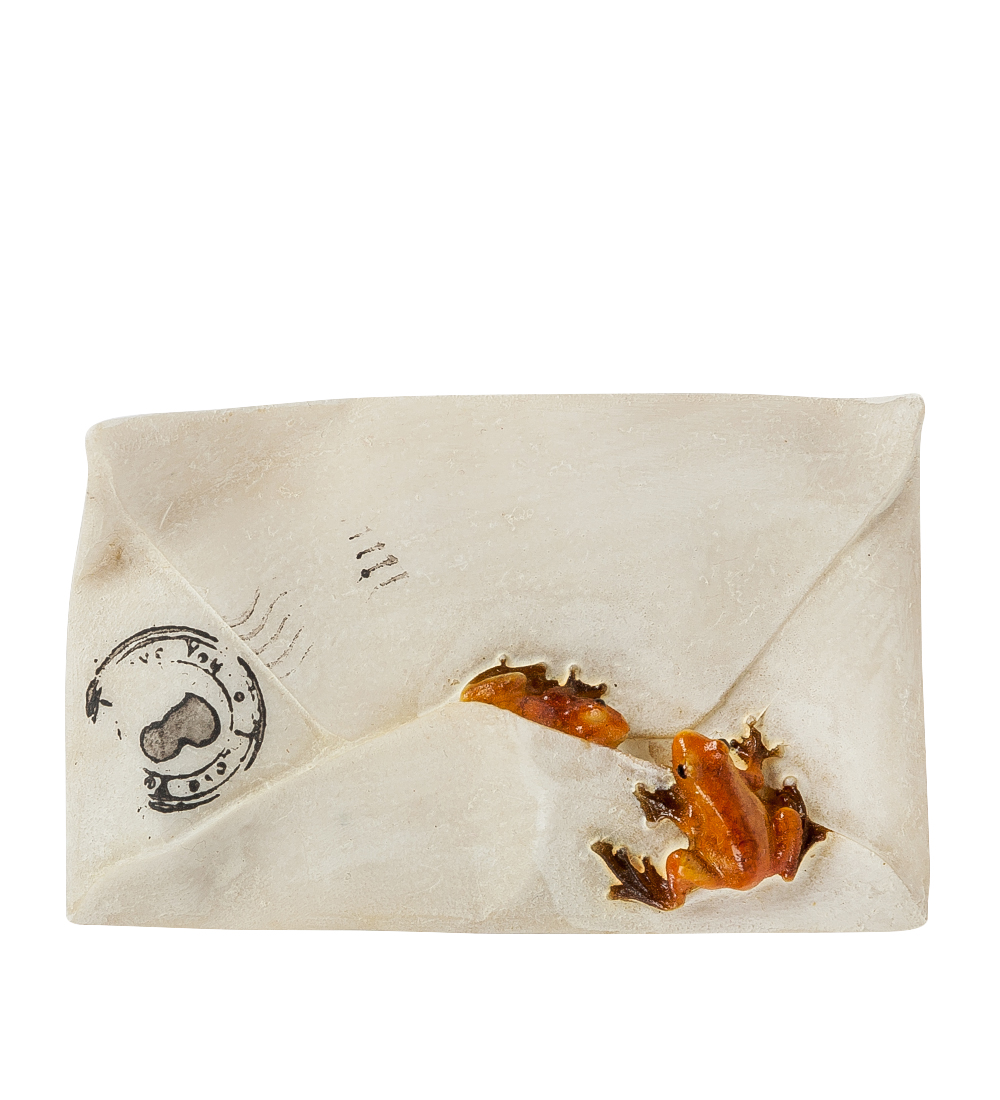 Ed- 81 фигурка конверт с лягушками. Параметры товара Материал: Полистоун Страна производства: Китай Размеры изделия Длина: 9 см; Ширина: 5.5 см; Высота: 1.5 см; Вес: 0.06 кг. Размеры упаковки Длина: 12.5 см; Ширина: 4 см; Высота: 8.5 см; Вес: 0.08 кг. Размеры короба (72 шт.) Длина: 39 см; Ширина: 28 см; Высота: 38 см; Вес: 6 кг.