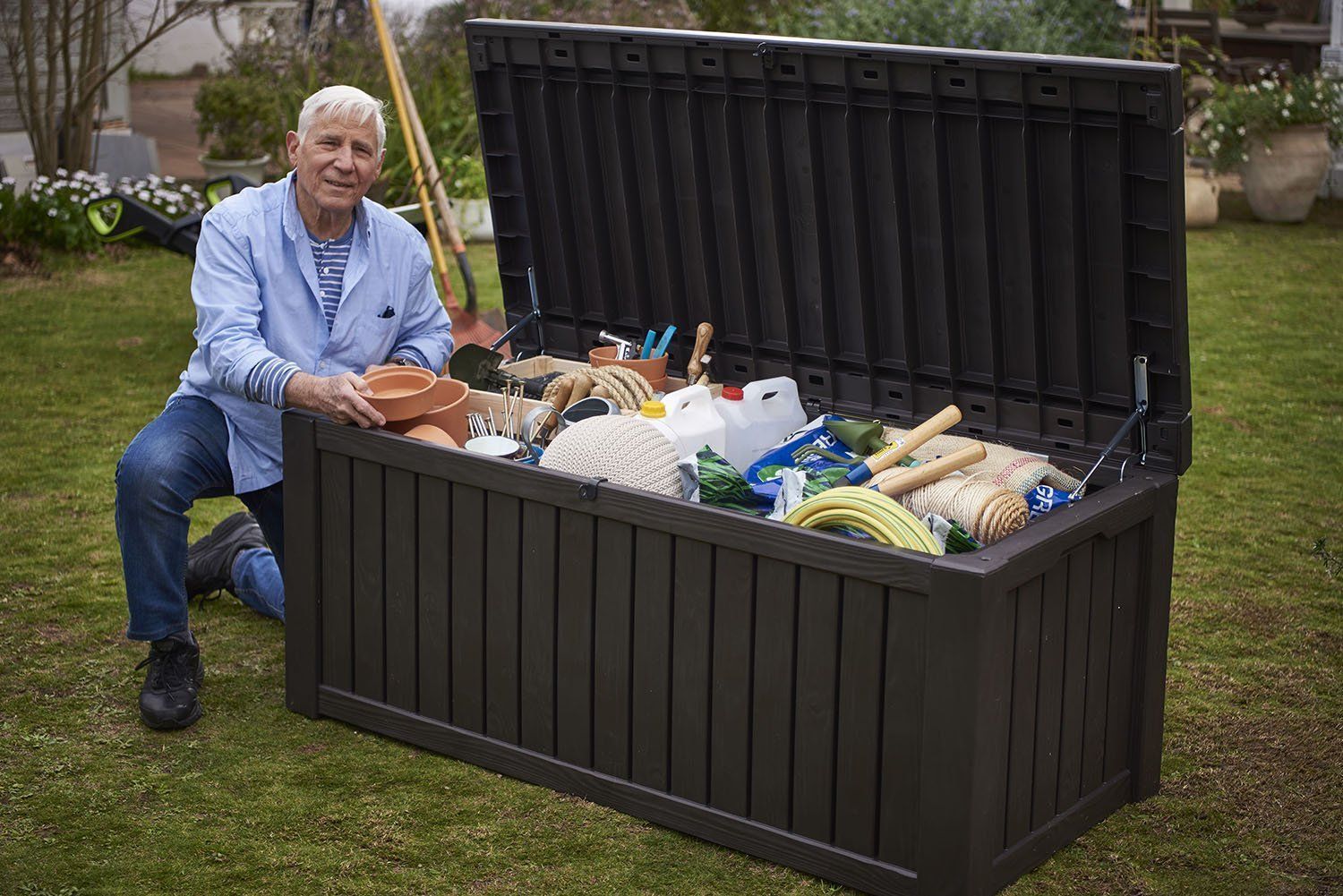 Уличный ящик keter glenwood серый, садовая мебель. Пластиковый сундук Glenwood стилизован под дерево, что придает ему оттенок стиля ретро. Компактный и стильный уличный сундук Glenwood станет отличным функциональным и стильным решением для вашего участка. Особенности: Подпружиненная крышка Привлекательный дизайн Можно использовать как скамейку, выдерживает двух взрослых Содержимое остается сухим и хорошо вентилируется Идеально для хранения, в помещении или вне его Вместительность: 390 nbsp л Размер, см 128 Х 65 Х 61 Материал изделия Ударостойкий полипропилен Страна бренда Израиль Страна производства Израиль Цвет серый Артикул производителя 17193522 сер