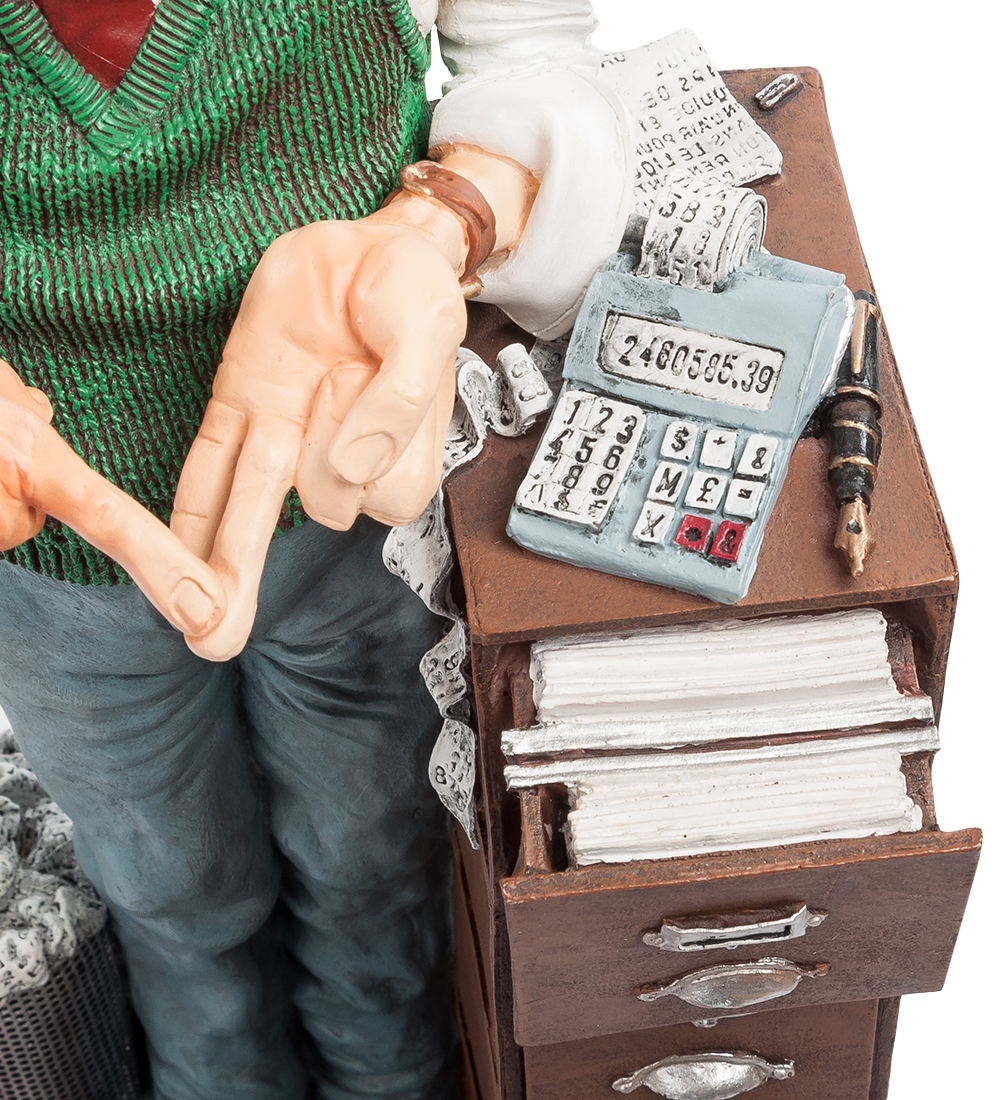 Fo-85536 статуэтка бухгалтер (the accountant. forchino). Параметры товара Материал: Полистоун Страна производства: Китай Страна бренда: Франция Размеры изделия Длина: 18 см; Ширина: 17 см; Высота: 42 см; Вес: 2.9 кг. Размеры упаковки Длина: 22.5 см; Ширина: 22.5 см; Высота: 52.5 см; Вес: 3.7 кг. Размеры короба Длина: 52 см; Ширина: 28 см; Высота: 50 см; Вес: 7.8 кг.